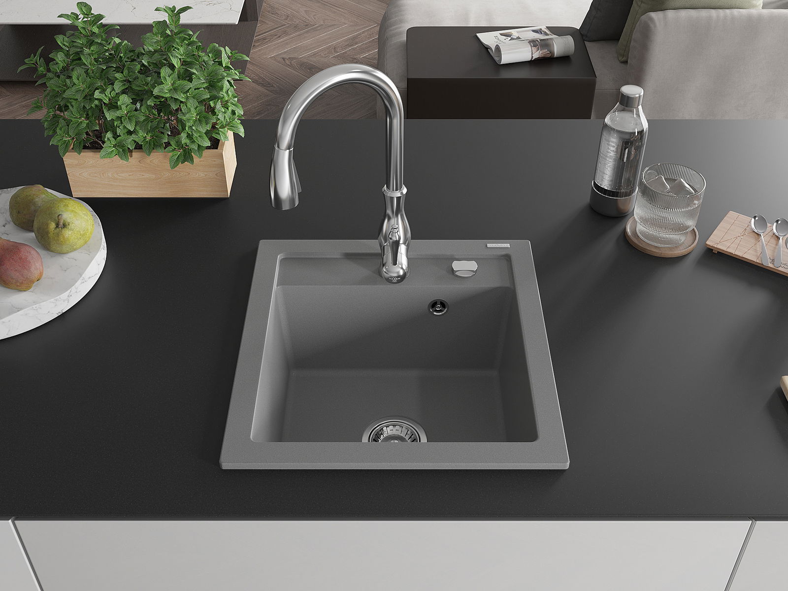 Mexen Vito νεροχύτης γρανίτης 1 θάλαμο με μπαταρία κουζίνας Savita, γκρι