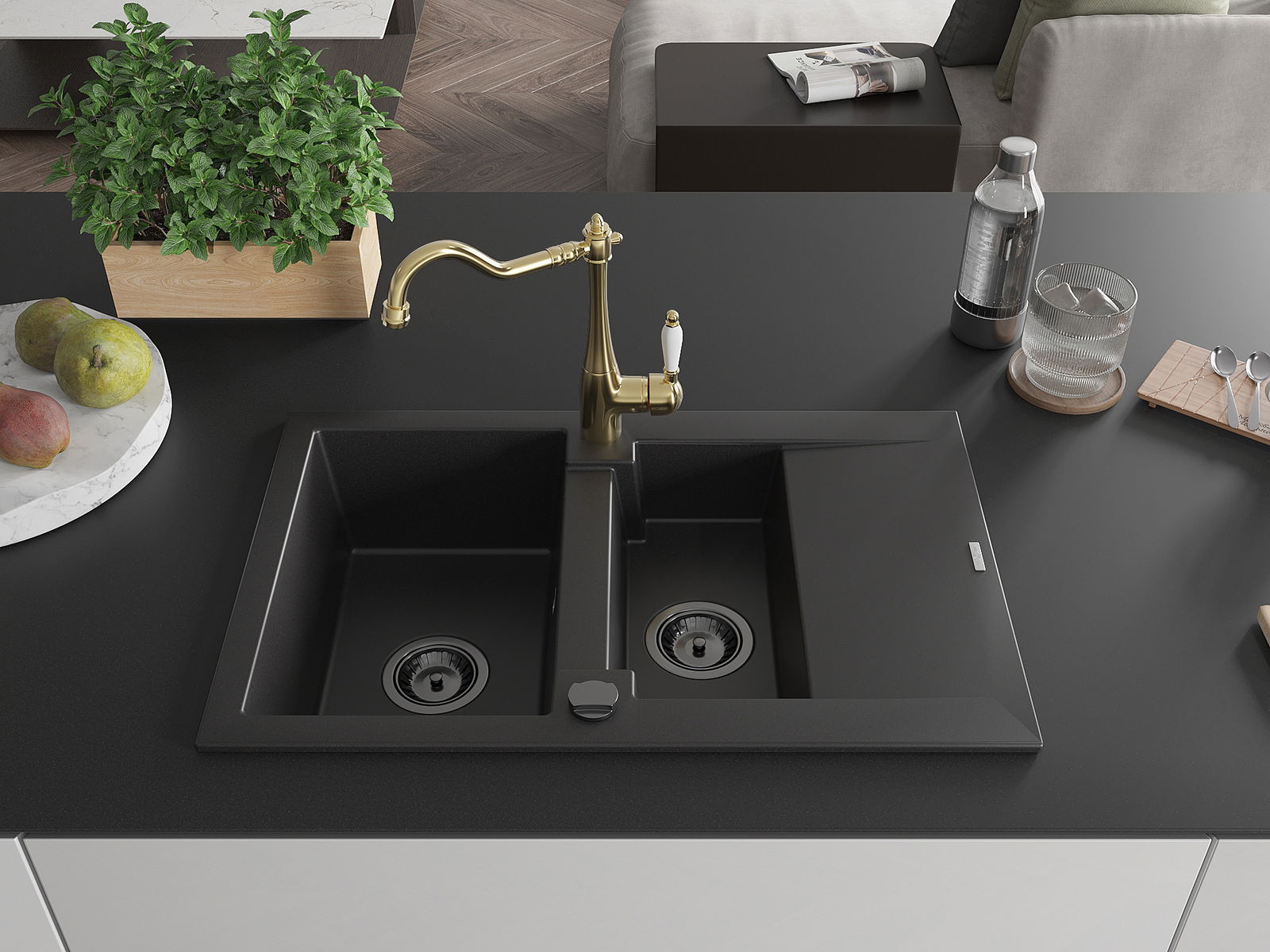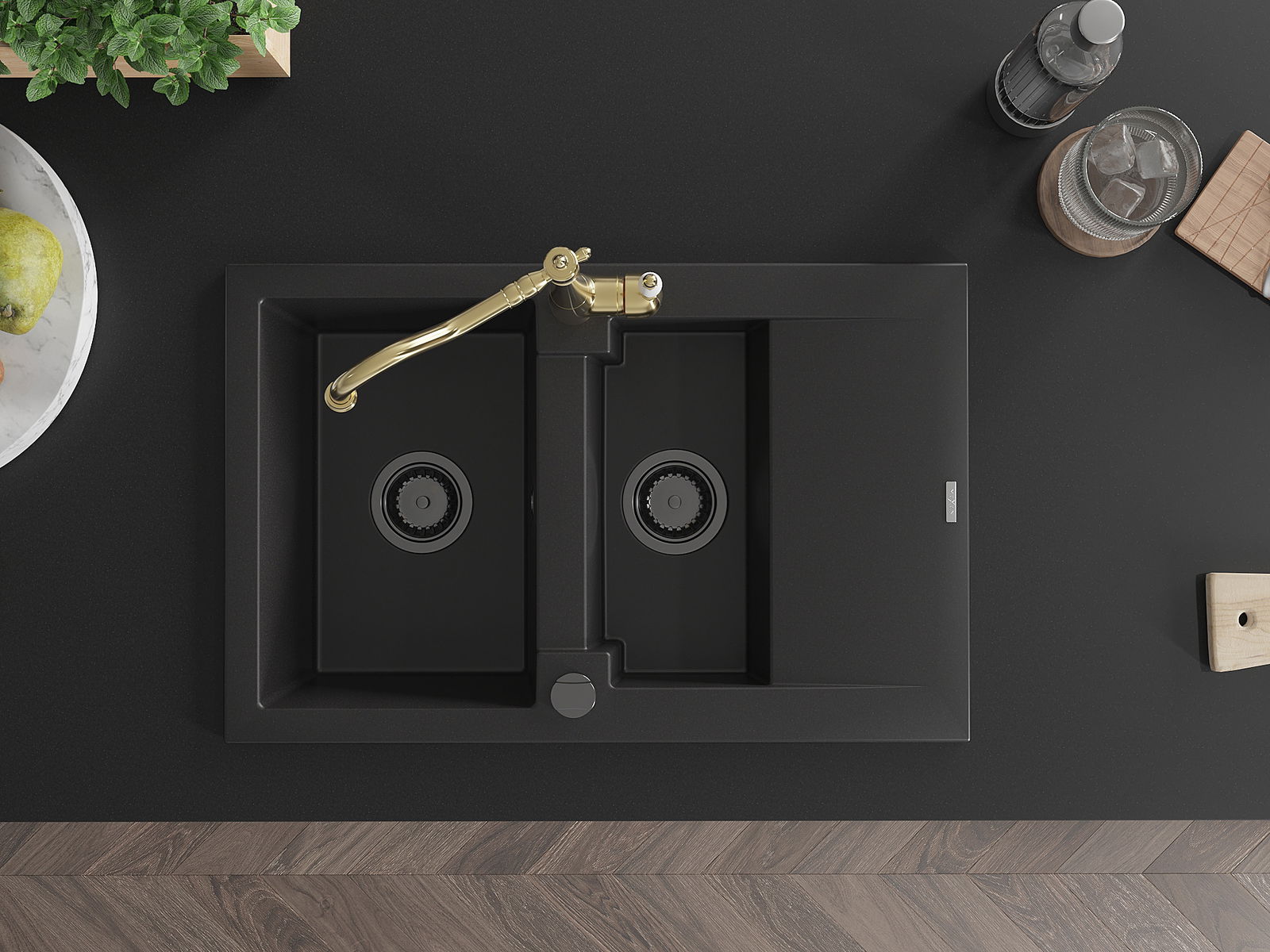 Mexen Gaspar νεροχύτης γρανίτης 1,5-θαλάμων με αποστράγγιση και κουζίνα
