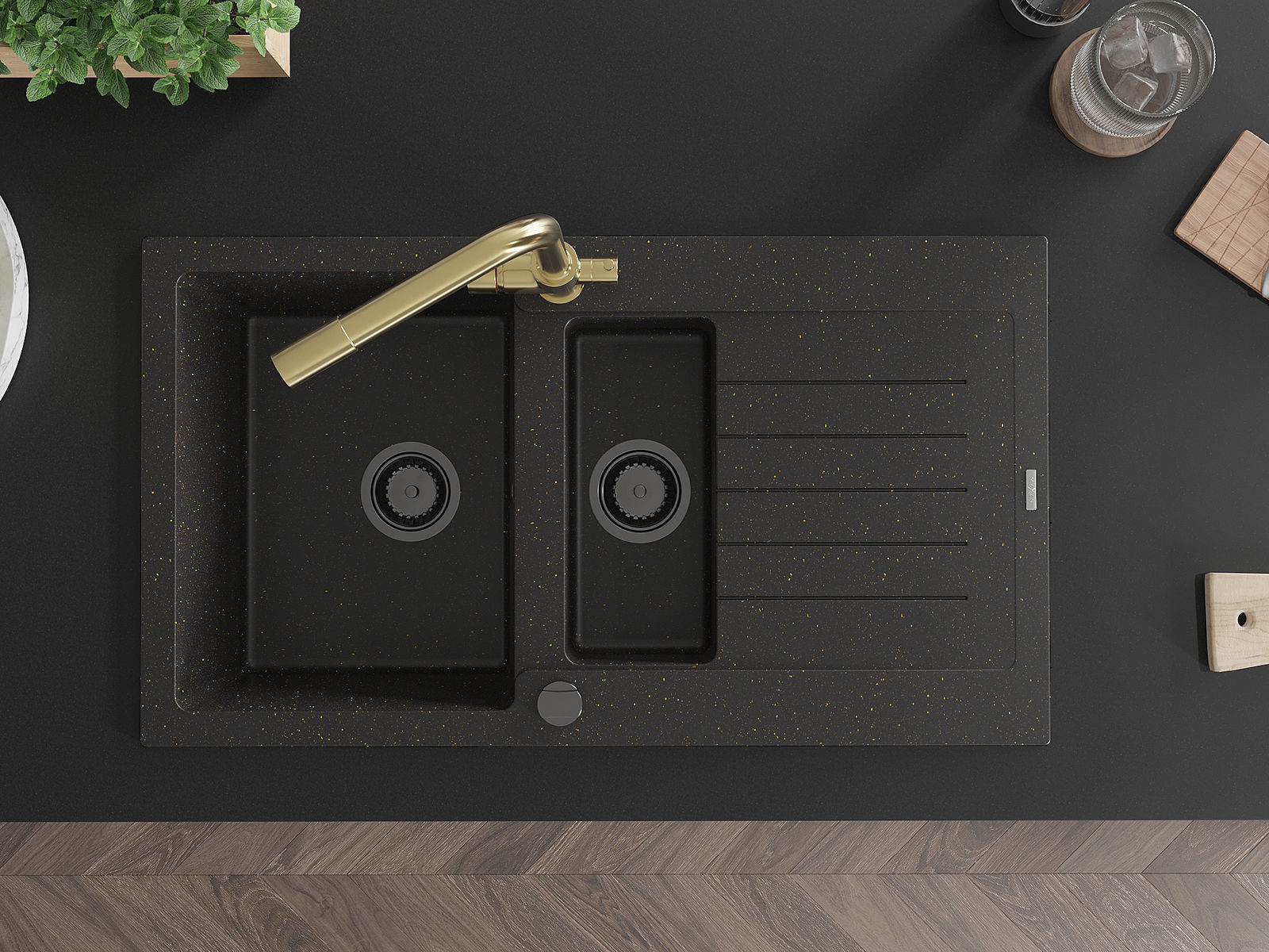 Mexen Matias νεροχύτης γρανίτη 1,5-θυρίδων με στραγγιστικό και μπαταρία