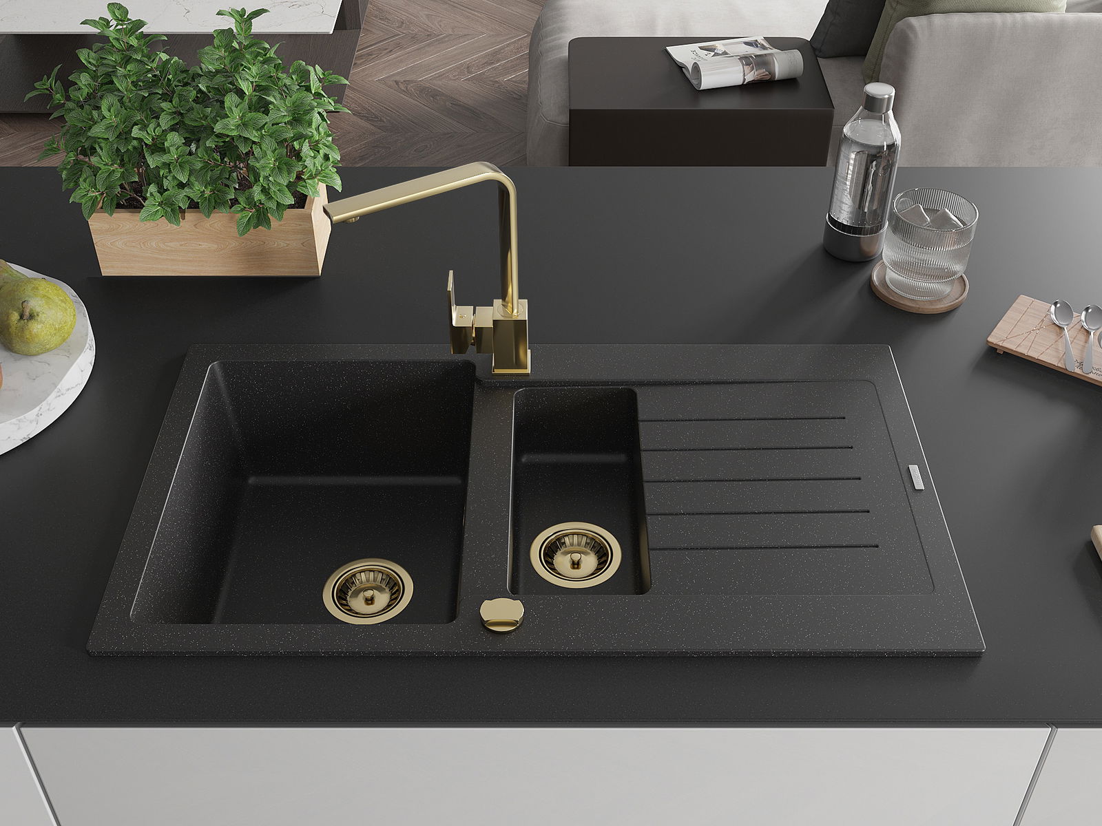 Mexen Matias νεροχύτης γρανίτη 1,5-θαλάμου με στραγγιστήρα και μπαταρία