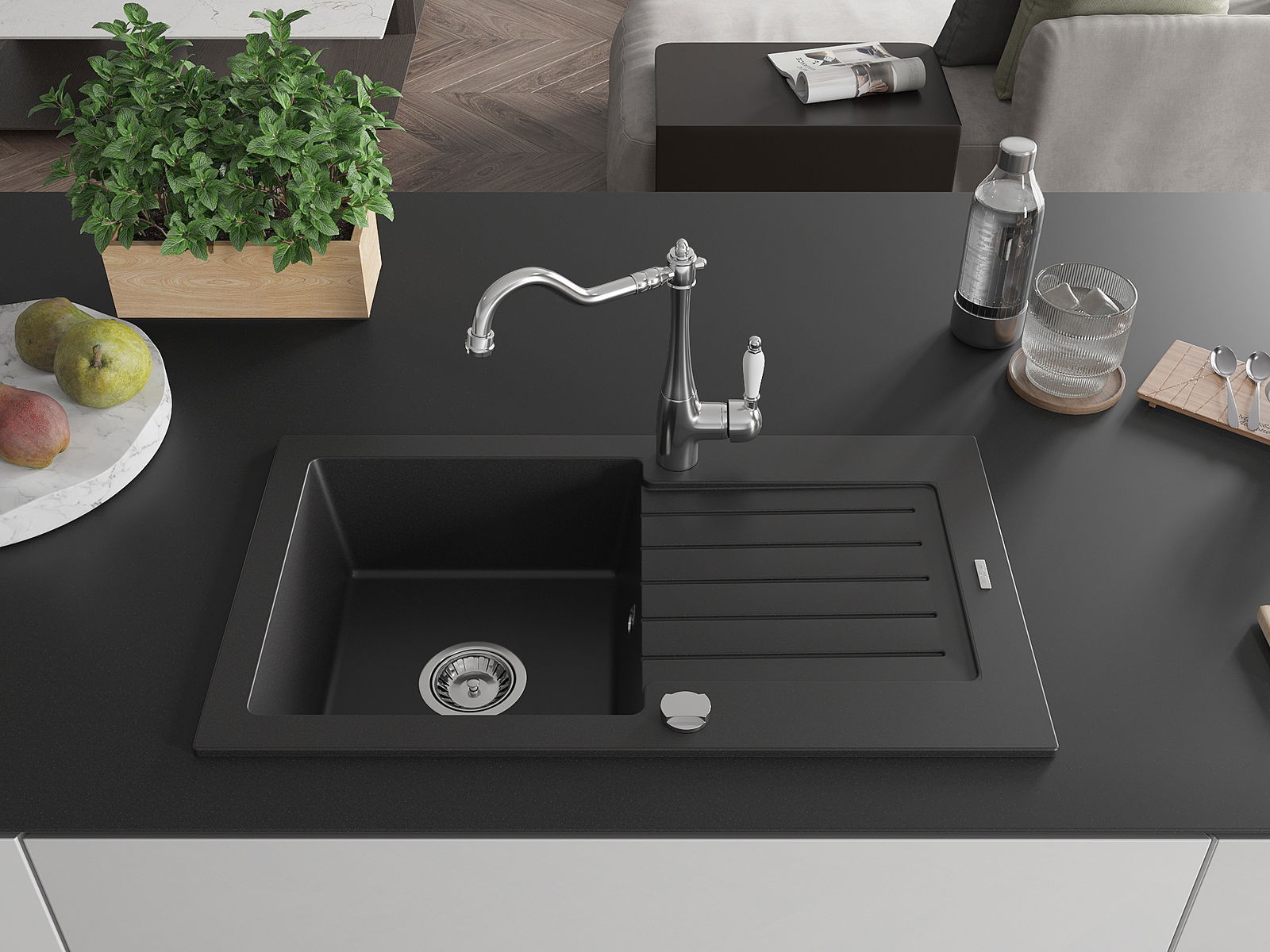 Ο νεροχύτης κατασκευάστηκε από υψηλής ποιότητας γρανίτη. Αποτελεί μια κομψή, και κυρίως πρακτική προσθήκη για κάθε κουζίνα, ανεξάρτητα από το στυλ της. Η υψηλή ποιότητα και η αντοχή του γρανίτη εξασφαλίζουν πολυετή χρήση.
