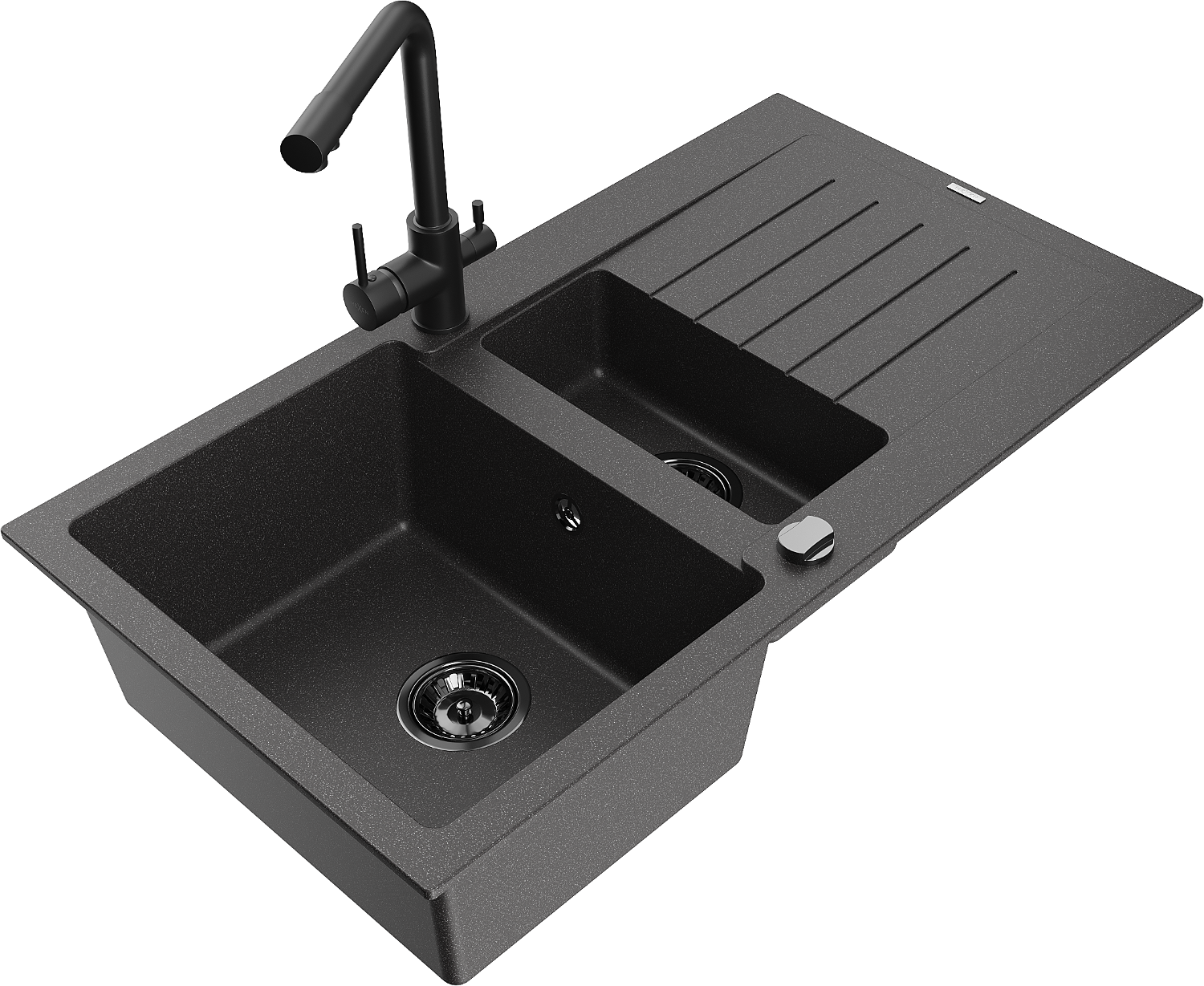 Mexen Matias νεροχύτης γρανίτης 1,5-θαλάμων με στραγγιστήρα και μπαταρία