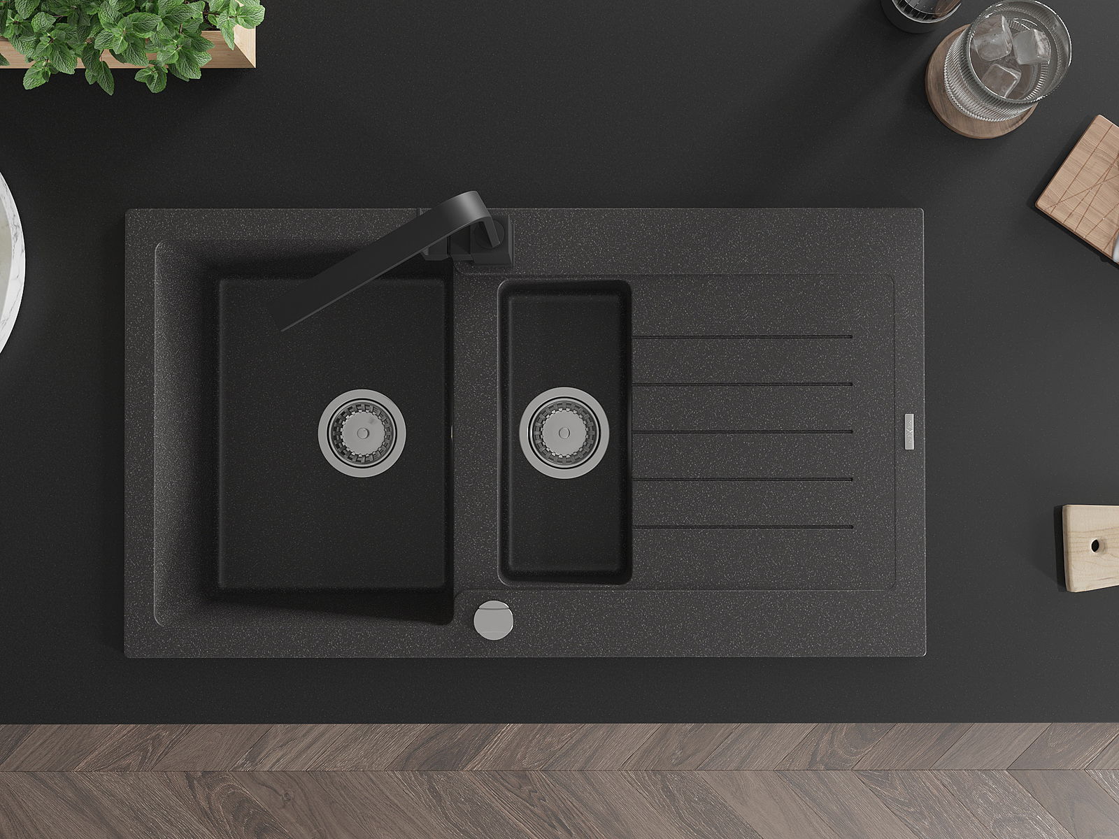 Mexen Matias νεροχύτης γρανίτης 1,5-θέσεως με αποστραγγιστήρα και μπαταρία
