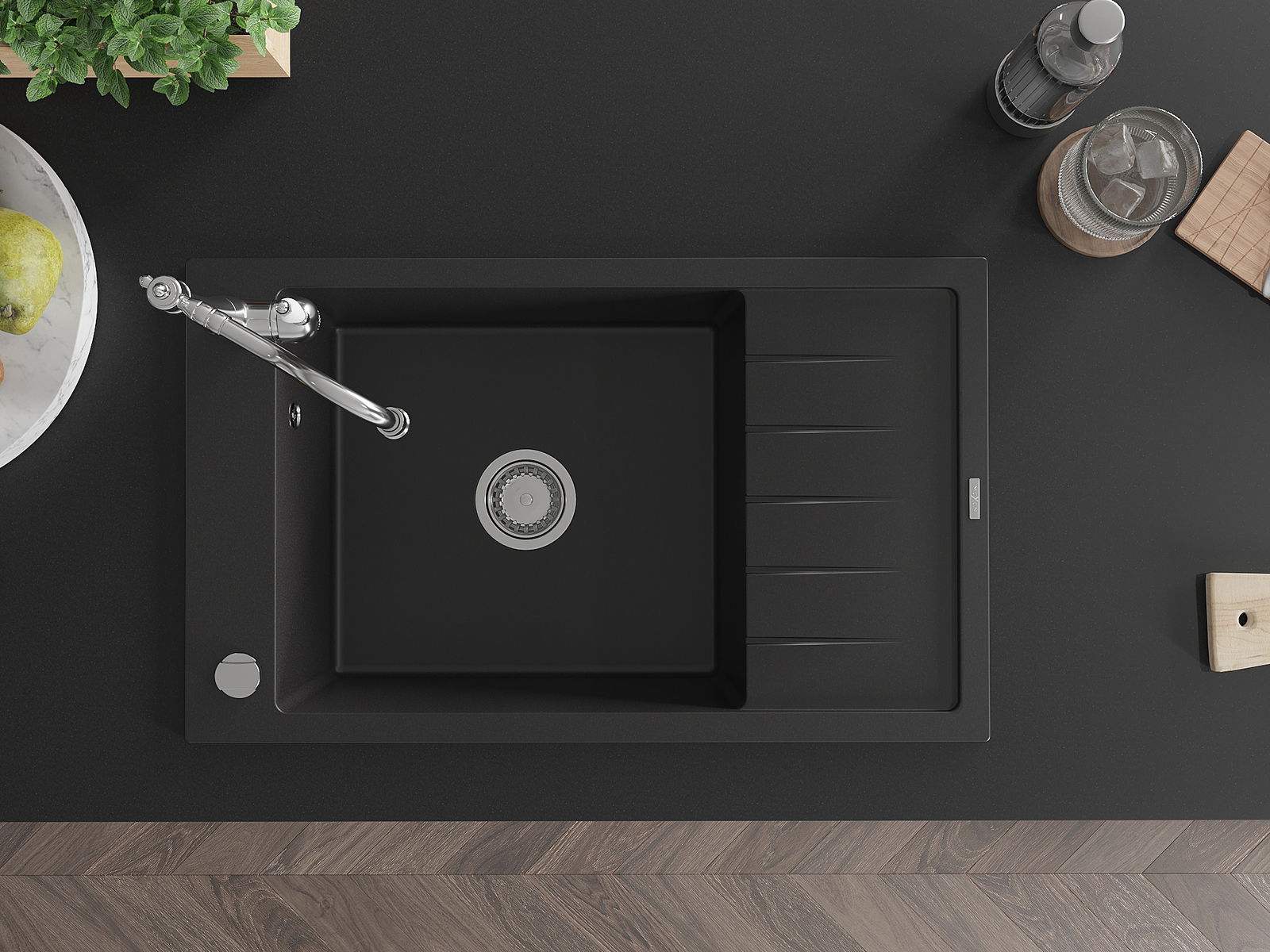 Ο νεροχύτης κατασκευάστηκε από υψηλής ποιότητας γρανίτη. Αποτελεί μια κομψή, και κυρίως πρακτική προσθήκη για κάθε κουζίνα, ανεξάρτητα από το στυλ της. Η υψηλή ποιότητα και η αντοχή του γρανίτη εξασφαλίζουν πολυετή χρήση.