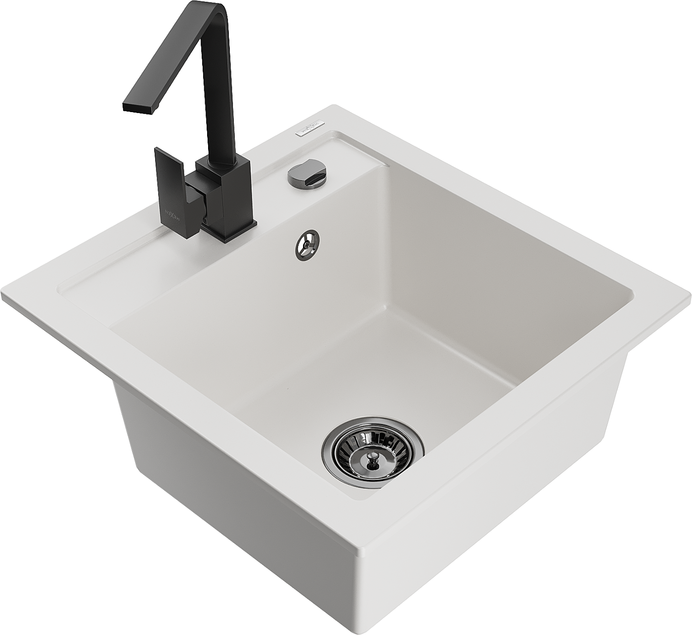 Mexen Vito νεροχύτης γρανίτη μονής λεκάνης με μπαταρία κουζίνας Rita, λευκός