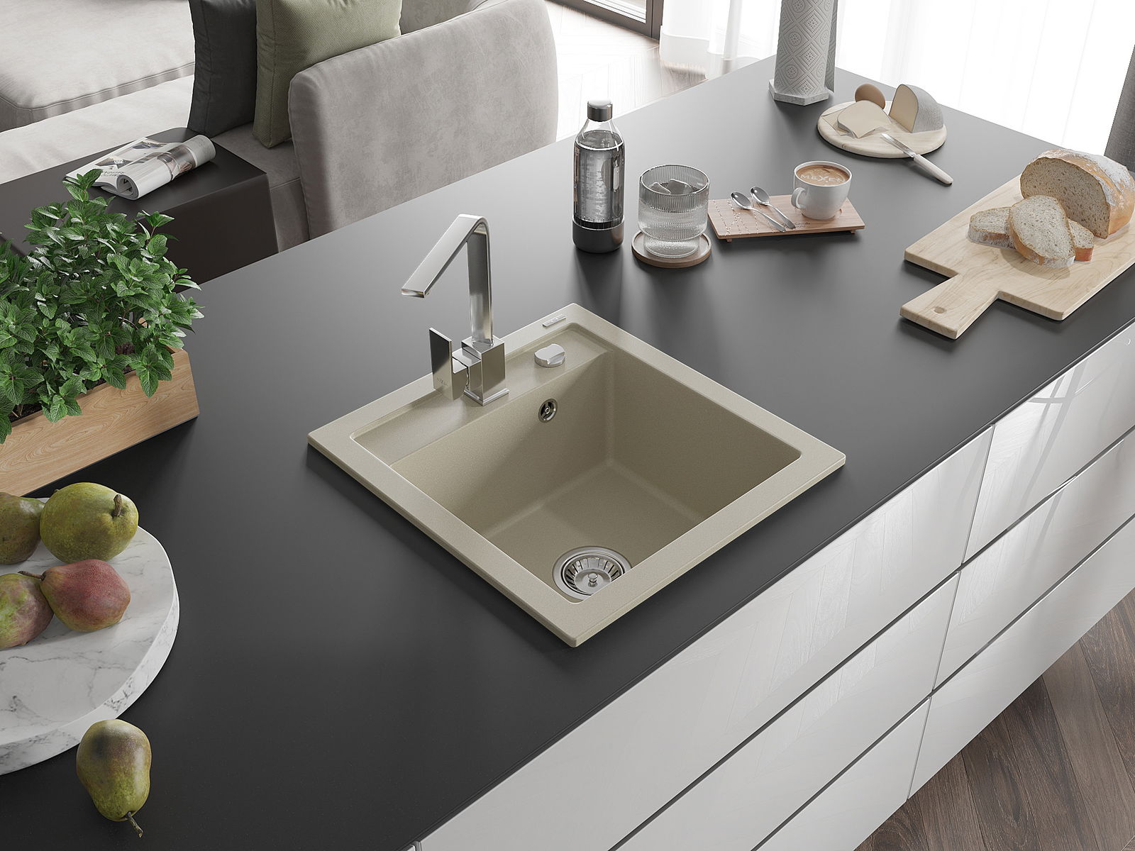 Ο νεροχύτης κατασκευάστηκε από υψηλής ποιότητας γρανίτη. Αποτελεί μια κομψή, και κυρίως πρακτική προσθήκη για κάθε κουζίνα, ανεξάρτητα από το στυλ της. Η υψηλή ποιότητα και η αντοχή του γρανίτη εξασφαλίζουν πολυετή χρήση.