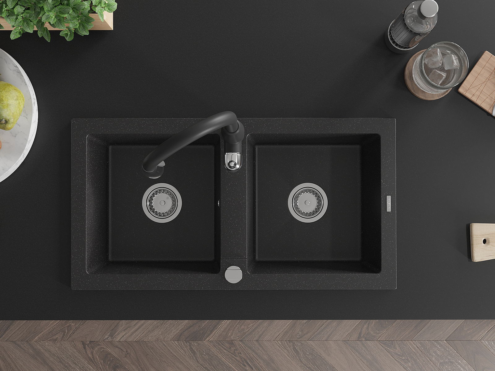 Mexen Mario γρανιτένιος νεροχύτης 2 θαλάμων με μπαταρία κουζίνας Savita,