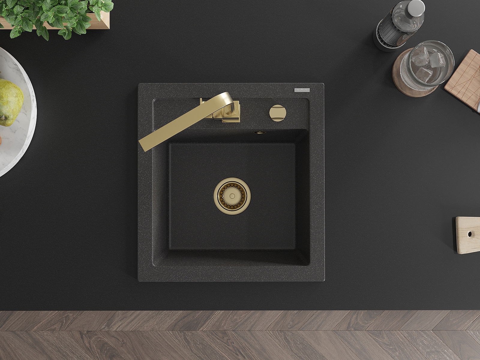 Mexen Vito νεροχύτης γρανίτης 1-κάμερας με μπαταρία κουζίνας Rita, μαύρος με