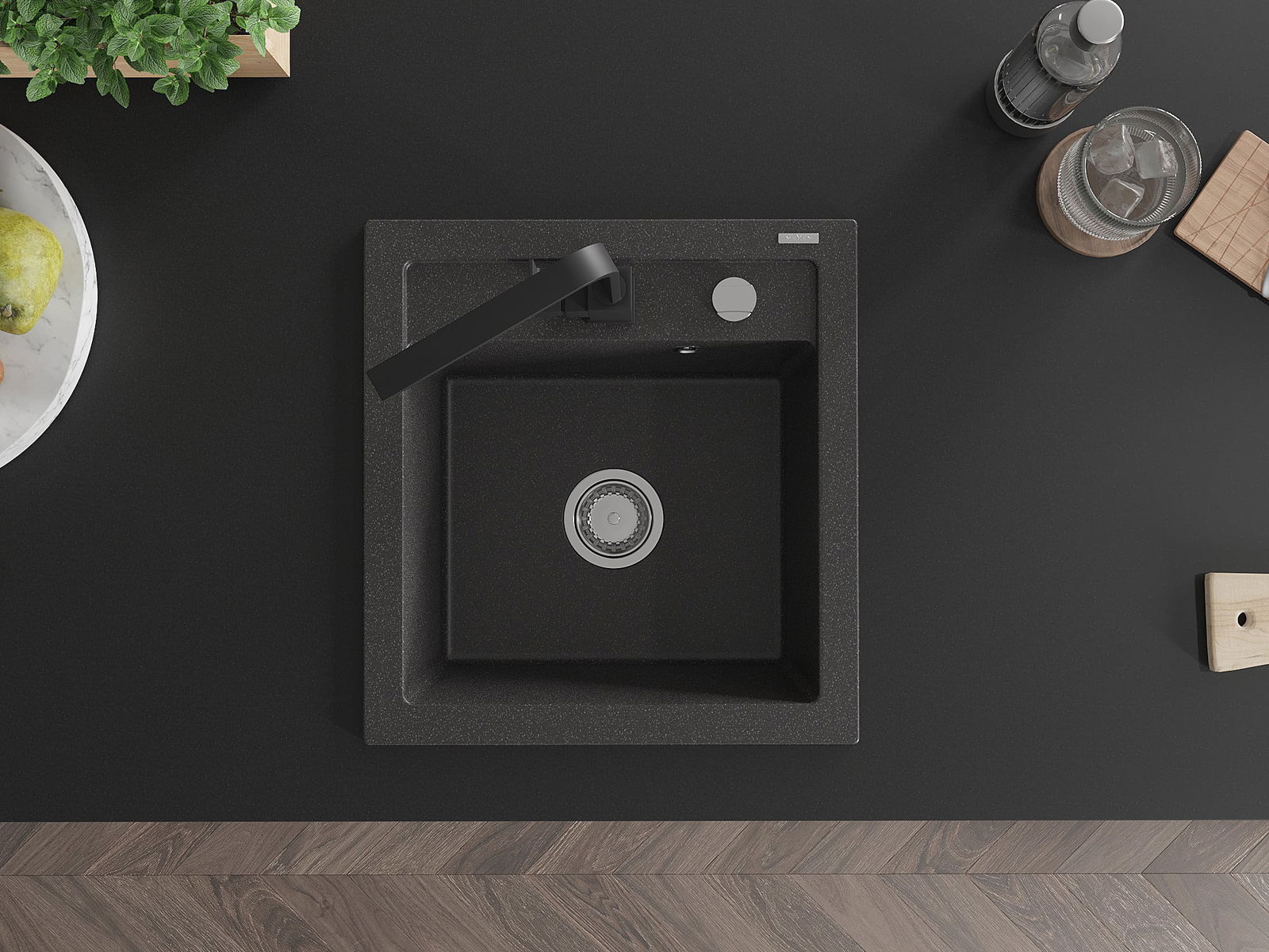 Mexen Vito νεροχύτης γρανίτης 1 θαλάμου με μπαταρία κουζίνας Rita, μαύρος με