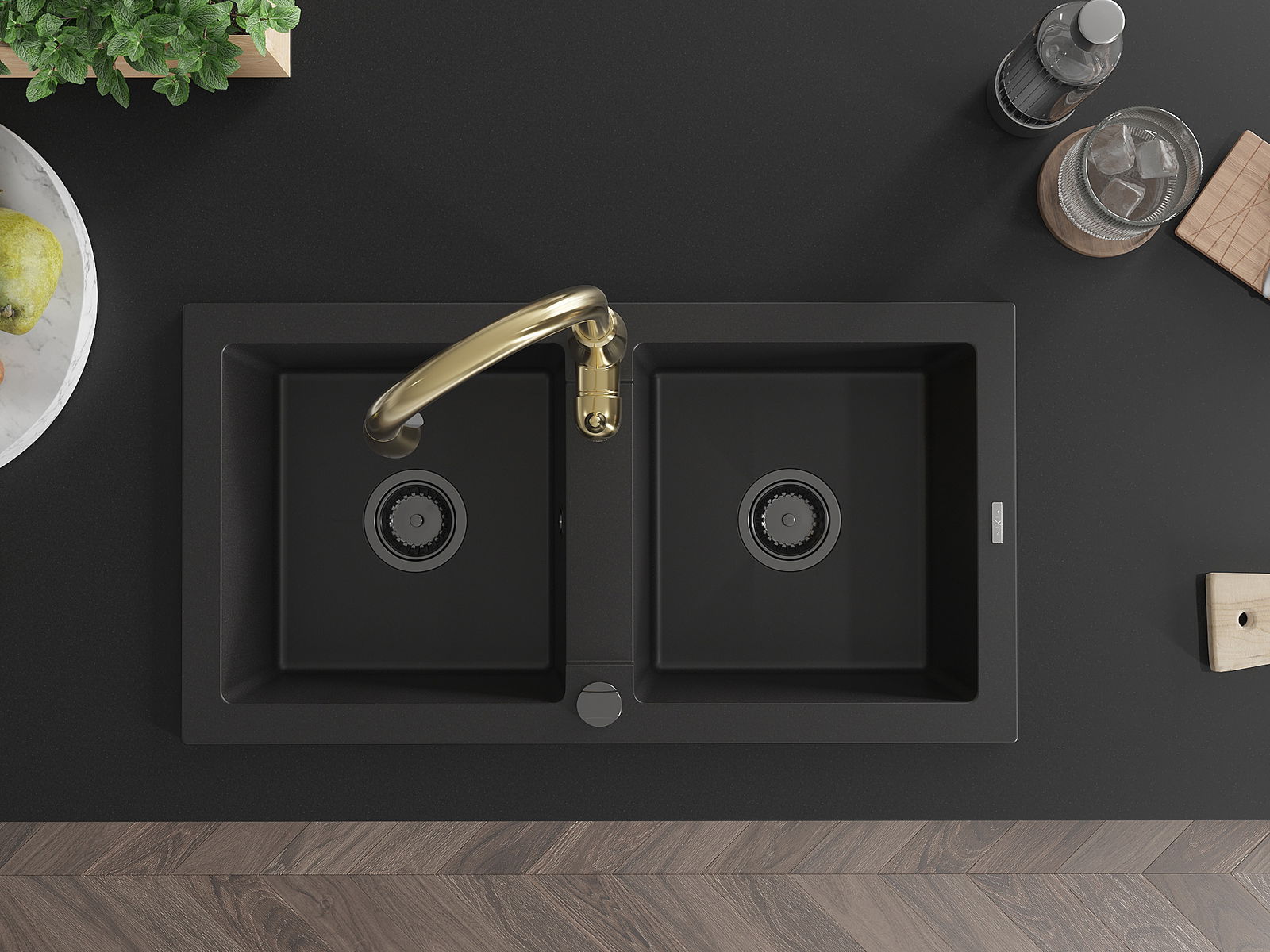 Mexen Mario νεροχύτης γρανίτη 2-θαλάμων με μπαταρία κουζίνας Savita, μαύρο