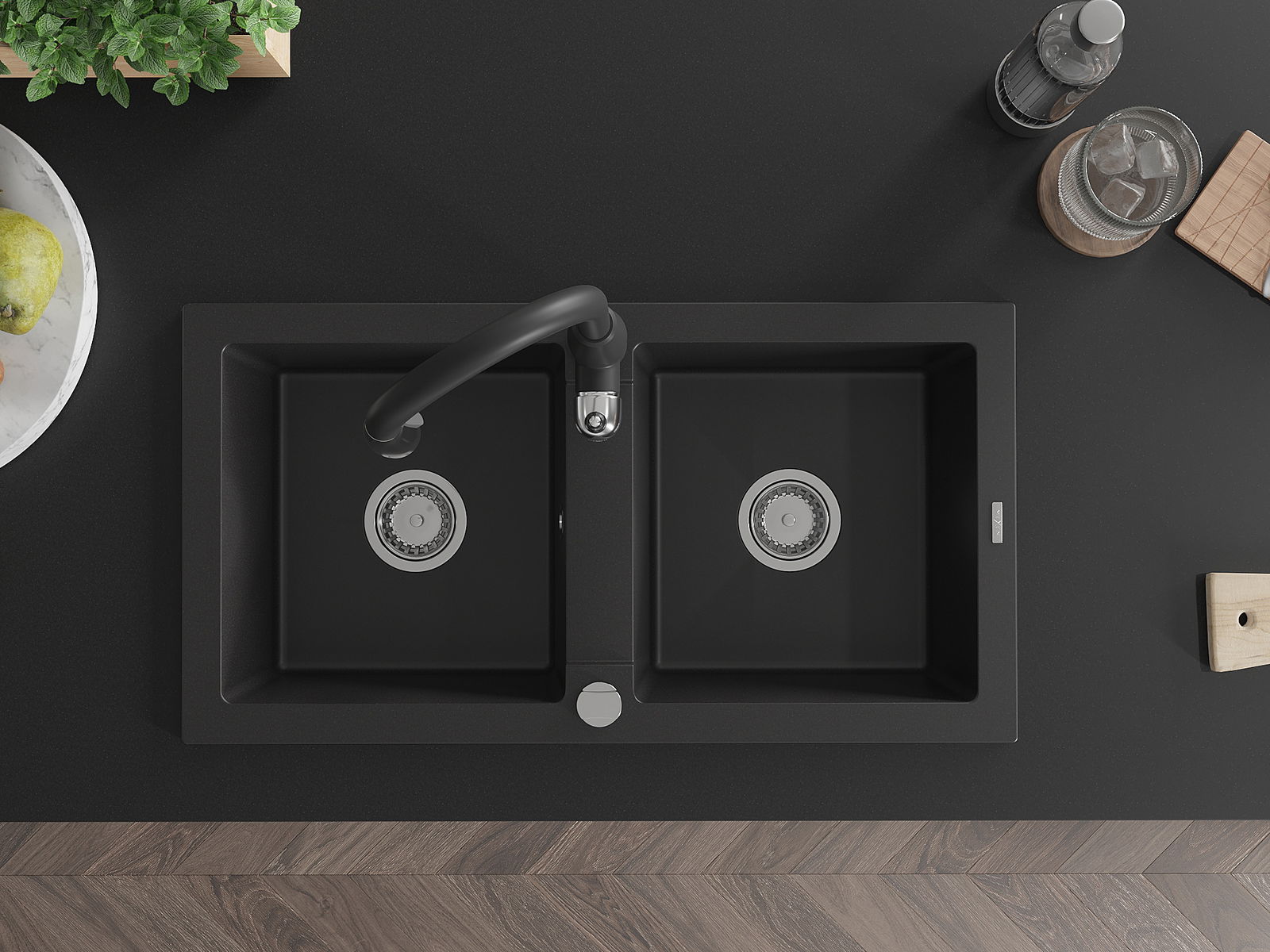Mexen Mario νεροχύτης γρανίτης 2 διαμερισμάτων με μπαταρία κουζίνας Savita,