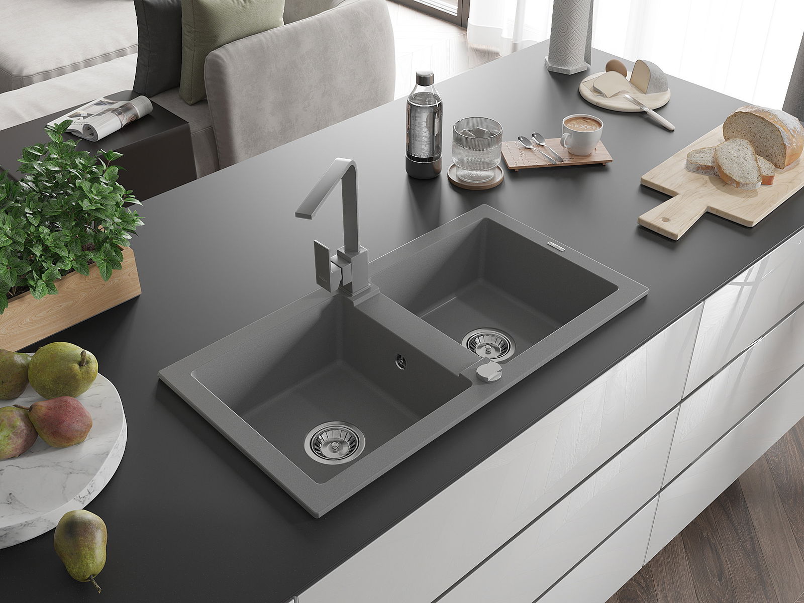 Ο νεροχύτης κατασκευάστηκε από υψηλής ποιότητας γρανίτη. Αποτελεί μια κομψή, και κυρίως πρακτική προσθήκη για κάθε κουζίνα, ανεξάρτητα από το στυλ της. Η υψηλή ποιότητα και η αντοχή του γρανίτη εξασφαλίζουν πολυετή χρήση.