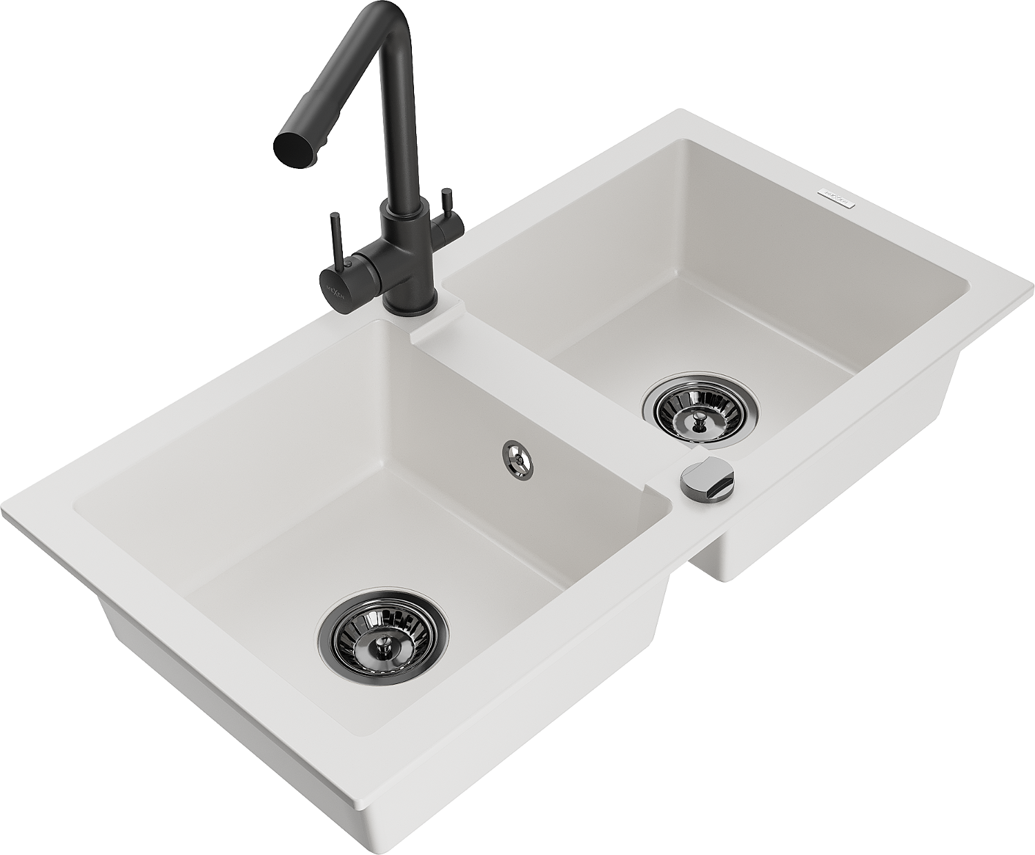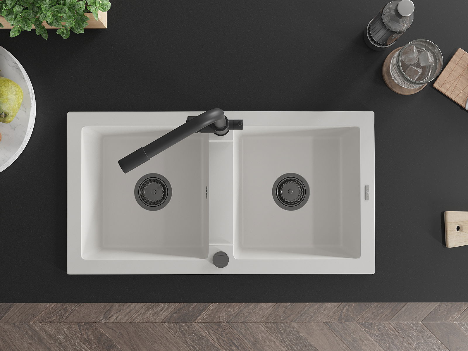 Mexen Mario νεροχύτης γρανίτης 2-θαλάμων με μπαταρία κουζίνας Duero, λευκός