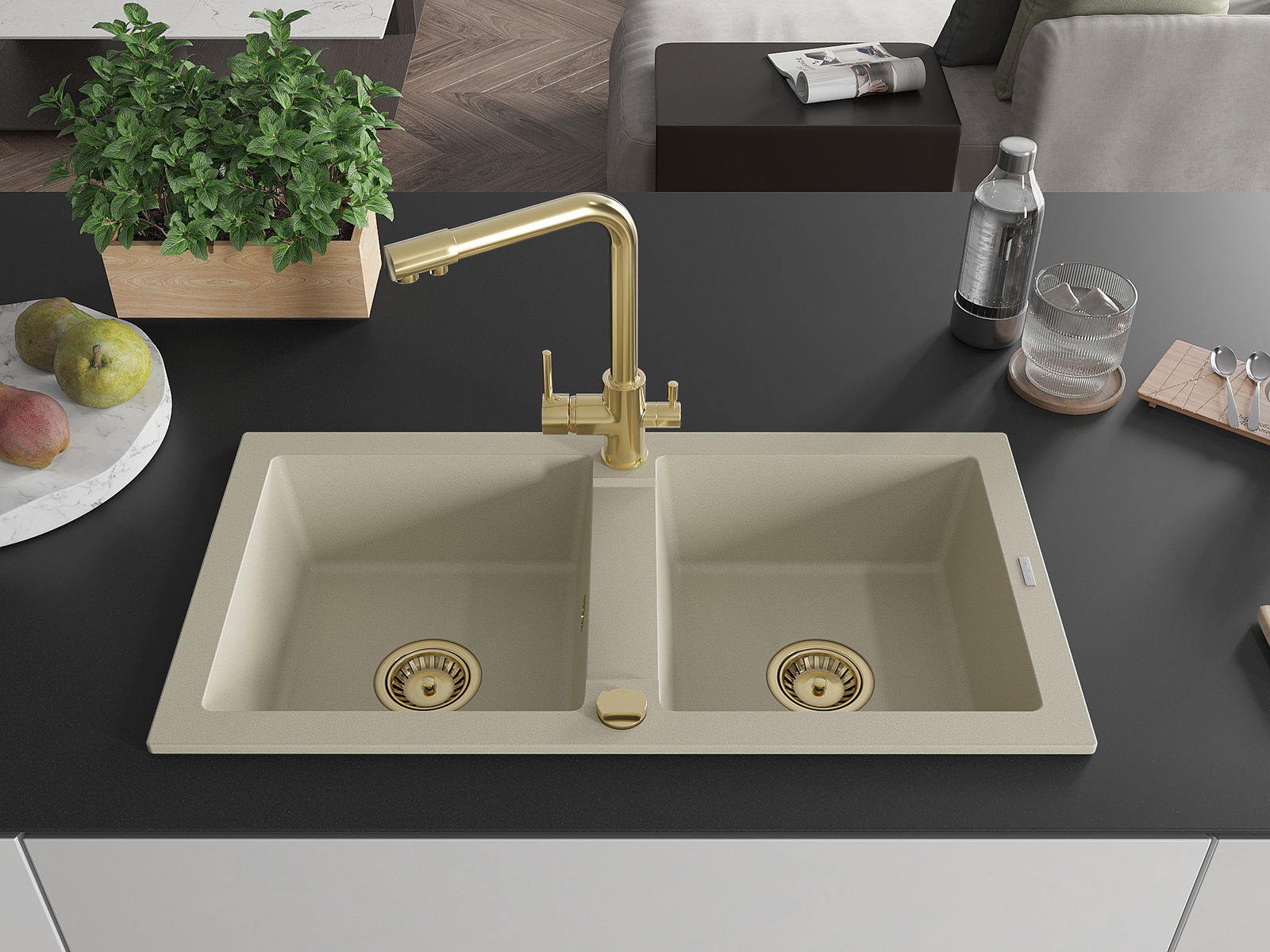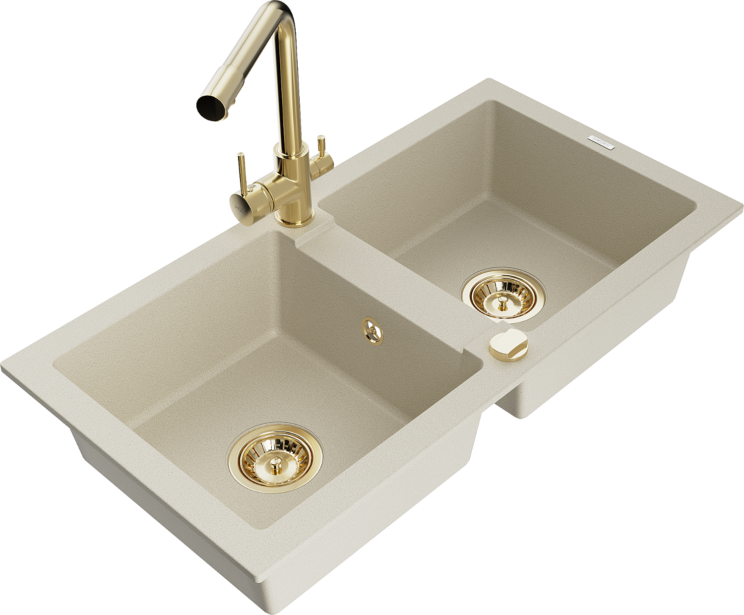 Mexen Mario νεροχύτης γρανίτης 2 θαλάμων με μπαταρία κουζίνας Duero, μπεζ