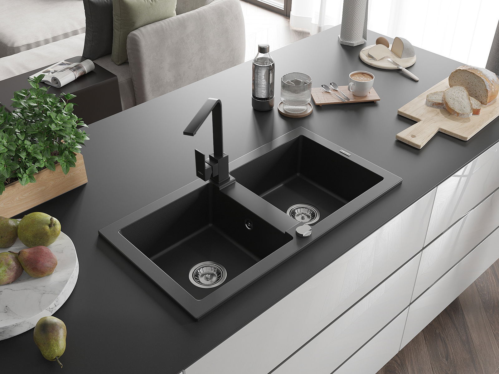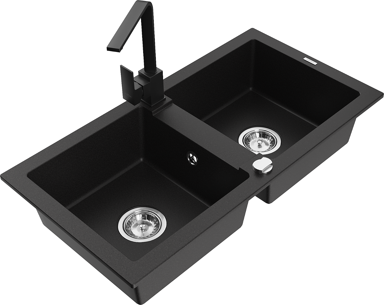 Mexen Mario Νεροχύτης γρανίτης 2 θαλάμων με μπαταρία κουζίνας Rita, μαύρο