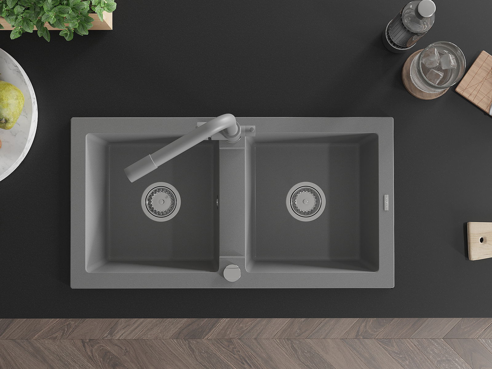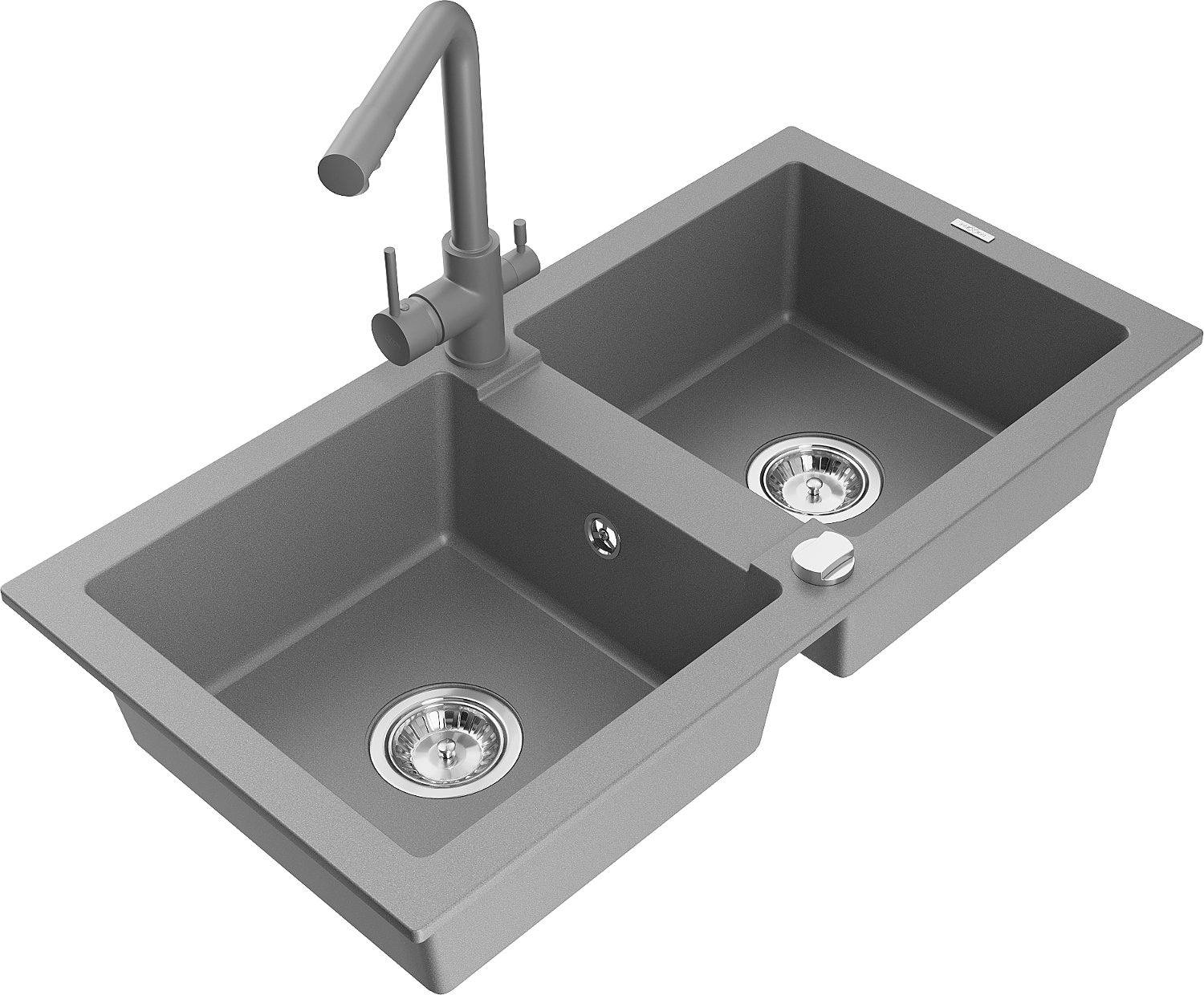 Mexen Mario νεροχύτης γρανίτης 2-θαλάμων με μπαταρία κουζίνας Duero, γκρι