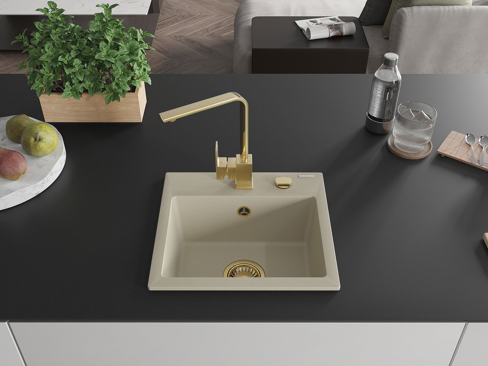 Mexen Milo νεροχύτης γρανίτη 1 θαλάμου με μπαταρία κουζίνας Rita, μπεζ