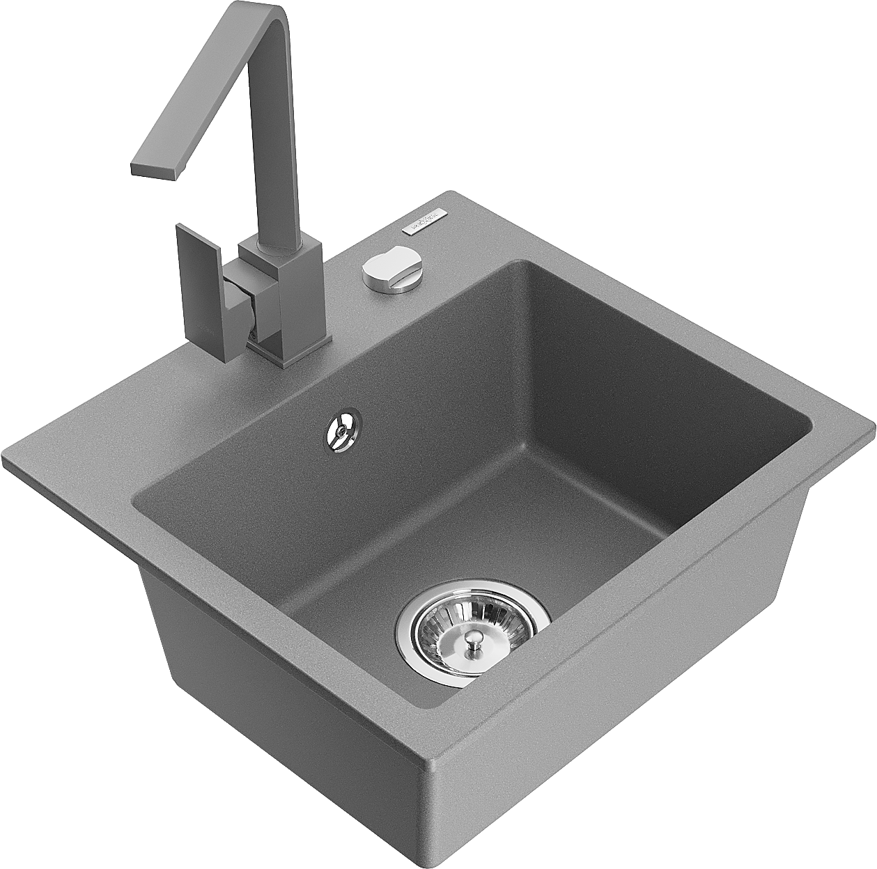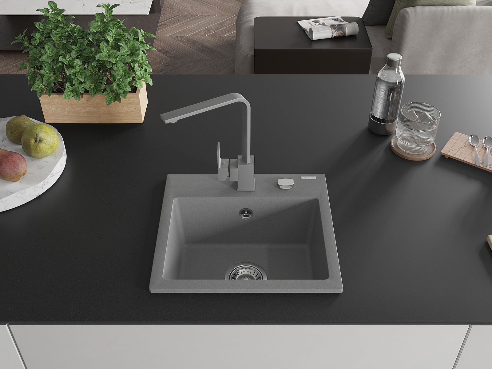 Mexen Milo νεροχύτης γρανίτης με 1 θάλαμο και μπαταρία κουζίνας Ρίτα, γκρι