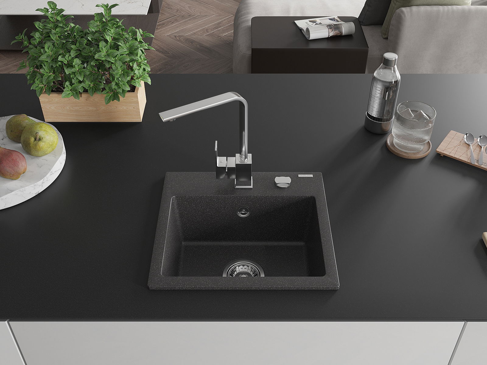 Ο νεροχύτης κατασκευάστηκε από υψηλής ποιότητας γρανίτη. Αποτελεί μια κομψή, και κυρίως πρακτική προσθήκη για κάθε κουζίνα, ανεξάρτητα από το στυλ της. Η υψηλή ποιότητα και η αντοχή του γρανίτη εξασφαλίζουν πολυετή χρήση.