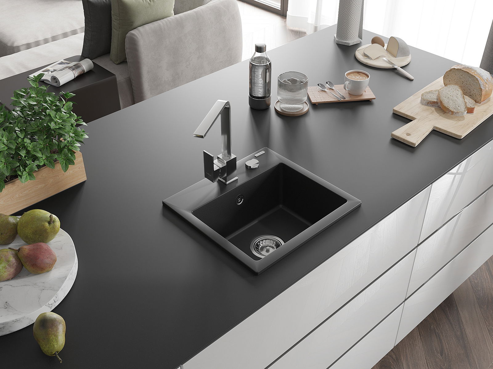 Ο νεροχύτης κατασκευάστηκε από υψηλής ποιότητας γρανίτη. Αποτελεί μια κομψή, και κυρίως πρακτική προσθήκη για κάθε κουζίνα, ανεξάρτητα από το στυλ της. Η υψηλή ποιότητα και η αντοχή του γρανίτη εξασφαλίζουν πολυετή χρήση.