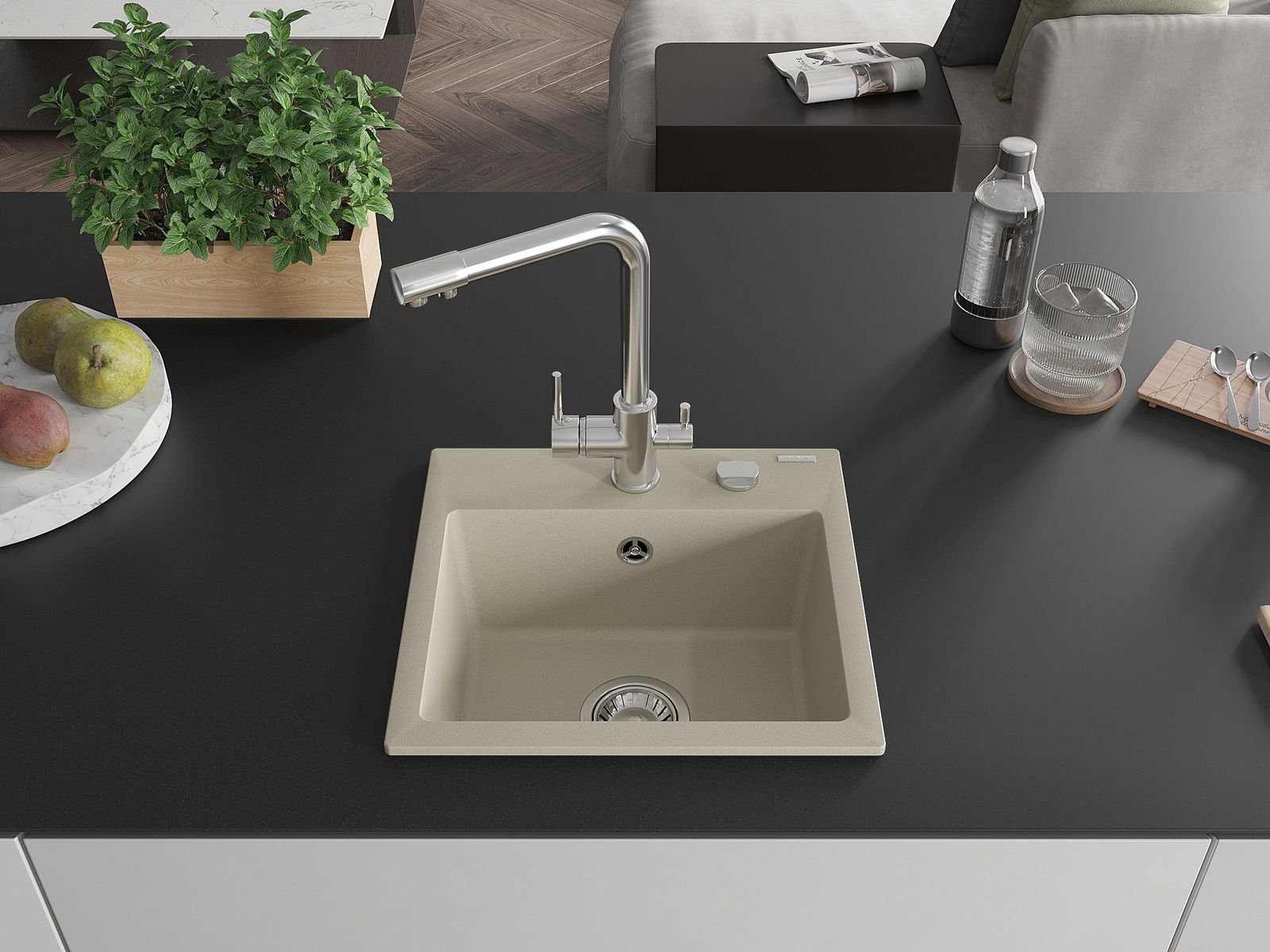 Mexen Milo νεροχύτης γρανίτη 1 θαλάμου με μπαταρία κουζίνας Duero, μπεζ