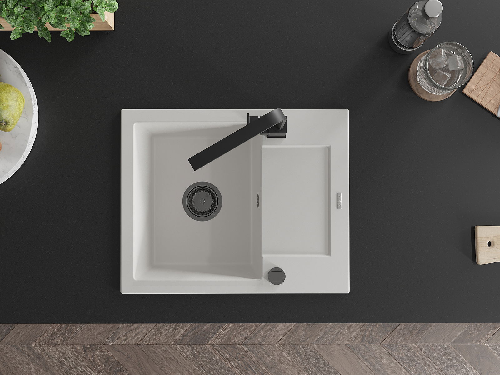 Mexen Enzo νεροχύτης γρανίτης 1 θάλαμος με αποστράγγιση και μπαταρία