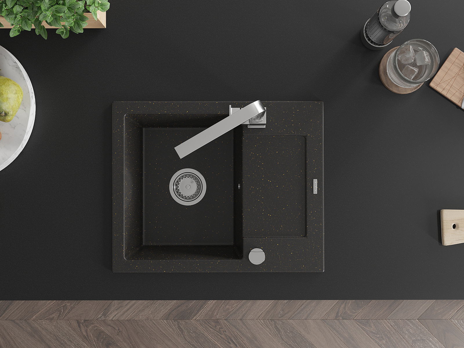 Ο νεροχύτης κατασκευάστηκε από υψηλής ποιότητας γρανίτη. Αποτελεί μια κομψή, και κυρίως πρακτική προσθήκη για κάθε κουζίνα, ανεξάρτητα από το στυλ της. Η υψηλή ποιότητα και η αντοχή του γρανίτη εξασφαλίζουν πολυετή χρήση.