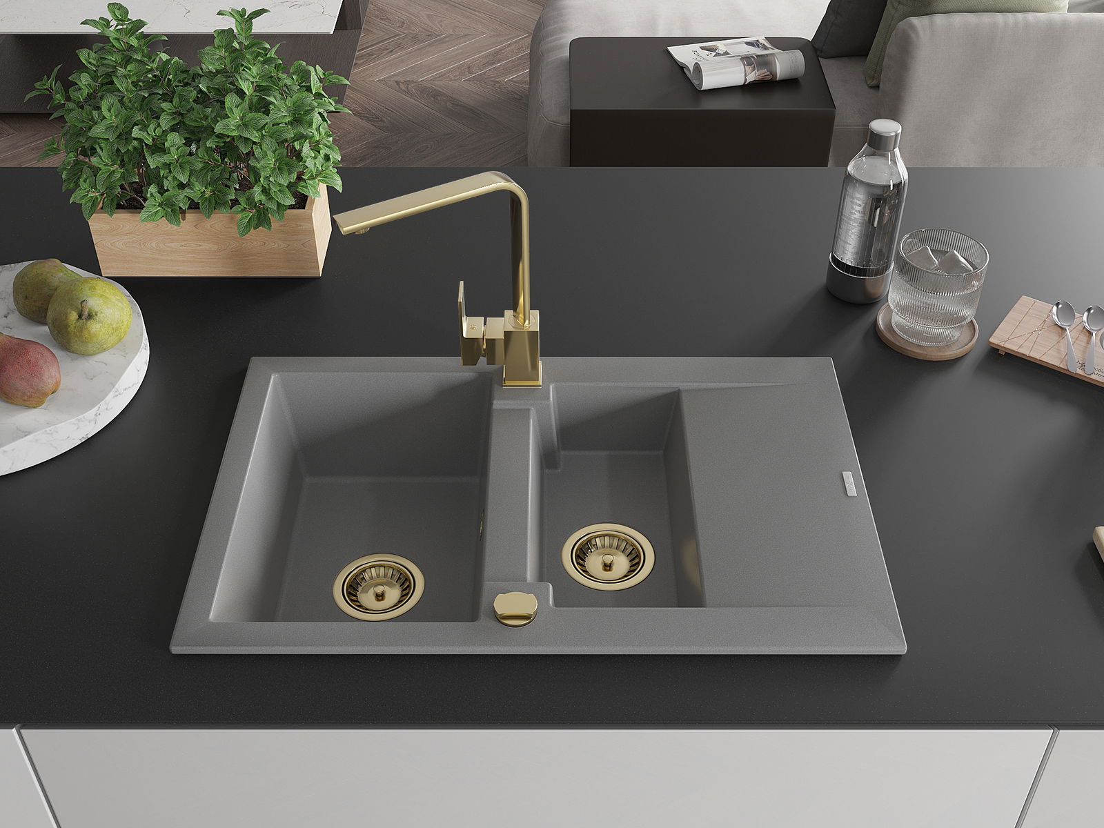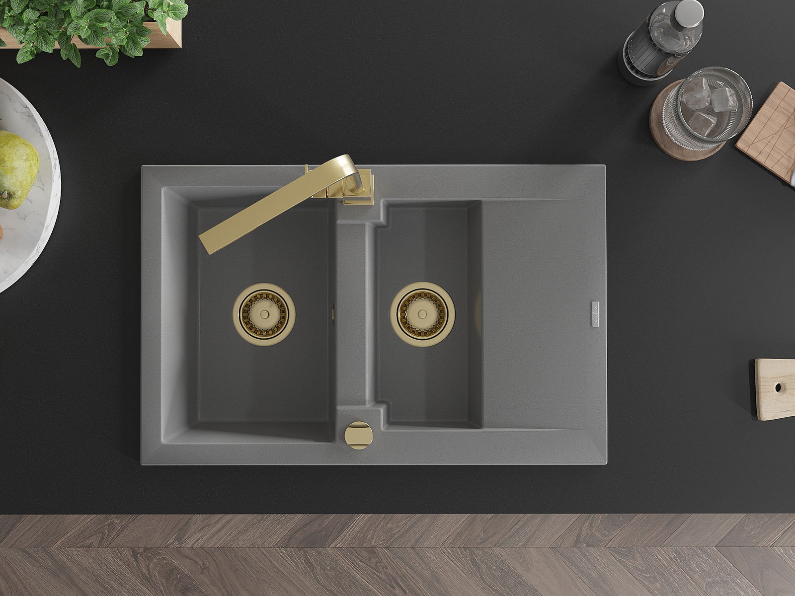 Mexen Gaspar νεροχύτης γρανίτης 1,5 θαλάμων με στραγγιστήριο και μπαταρία