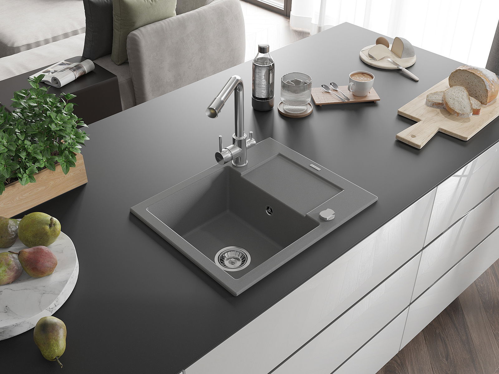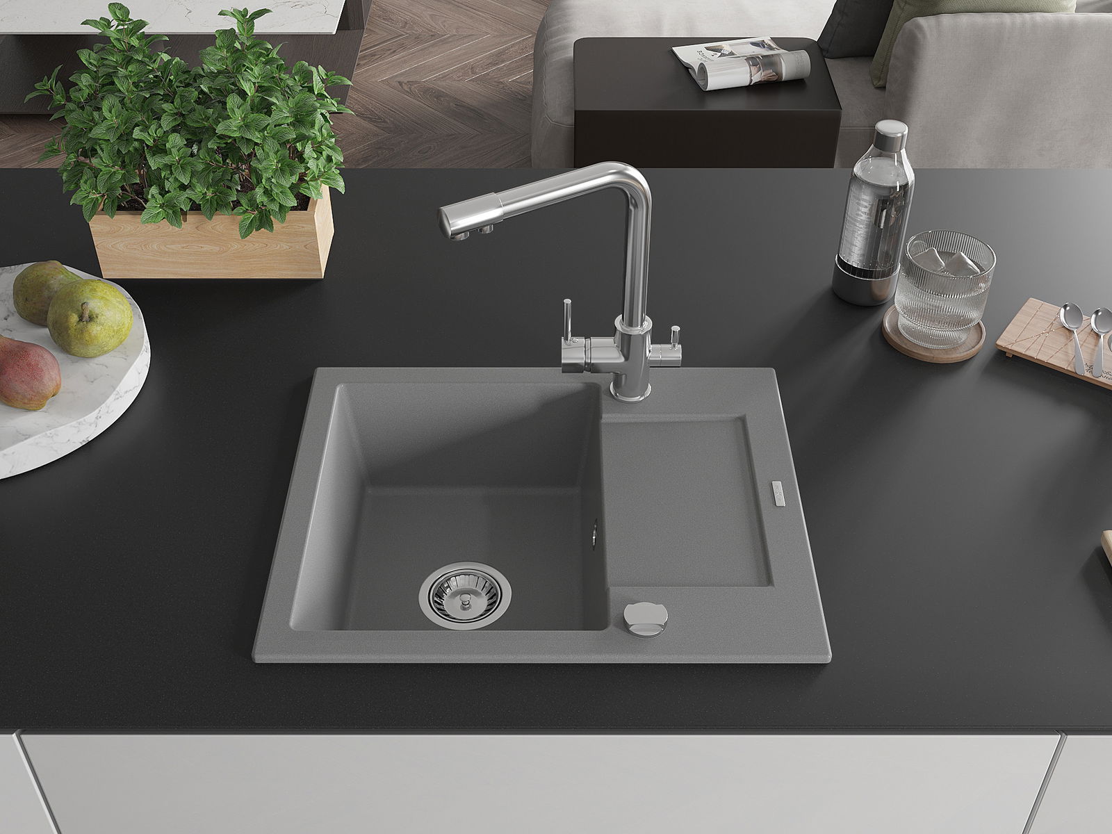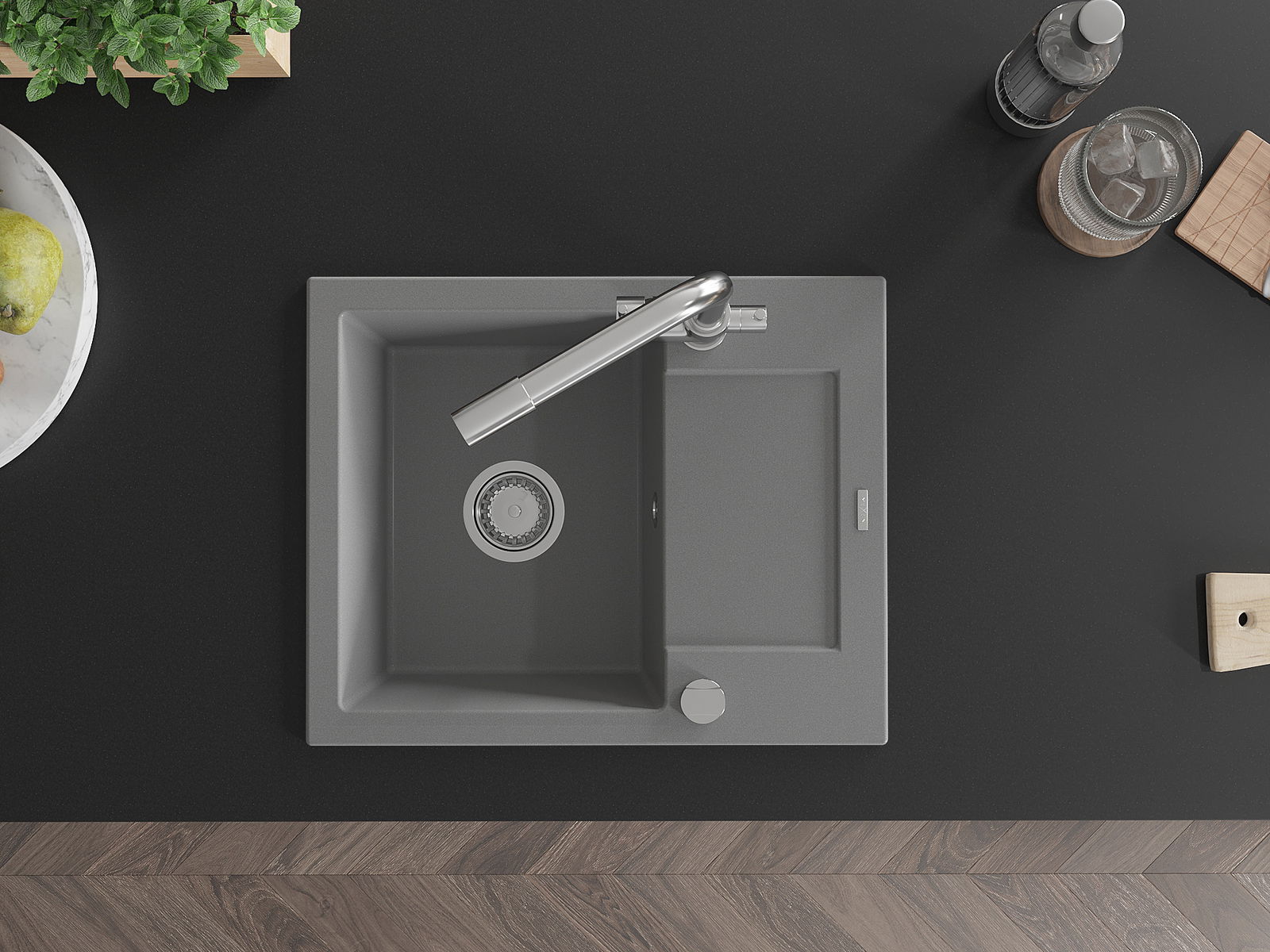 Ο νεροχύτης κατασκευάστηκε από υψηλής ποιότητας γρανίτη. Αποτελεί μια κομψή, και κυρίως πρακτική προσθήκη για κάθε κουζίνα, ανεξάρτητα από το στυλ της. Η υψηλή ποιότητα και η αντοχή του γρανίτη εξασφαλίζουν πολυετή χρήση.