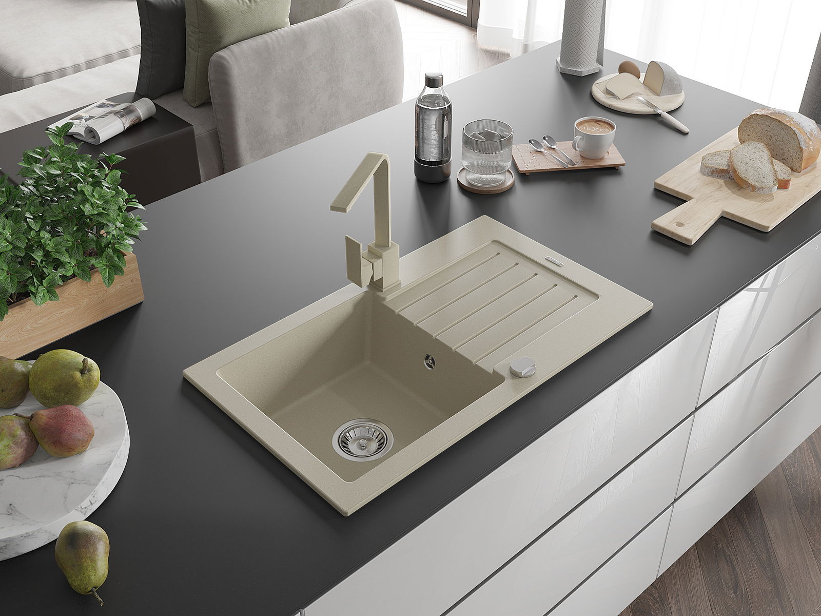 Ο νεροχύτης κατασκευάστηκε από υψηλής ποιότητας γρανίτη. Αποτελεί μια κομψή, και κυρίως πρακτική προσθήκη για κάθε κουζίνα, ανεξάρτητα από το στυλ της. Η υψηλή ποιότητα και η αντοχή του γρανίτη εξασφαλίζουν πολυετή χρήση.