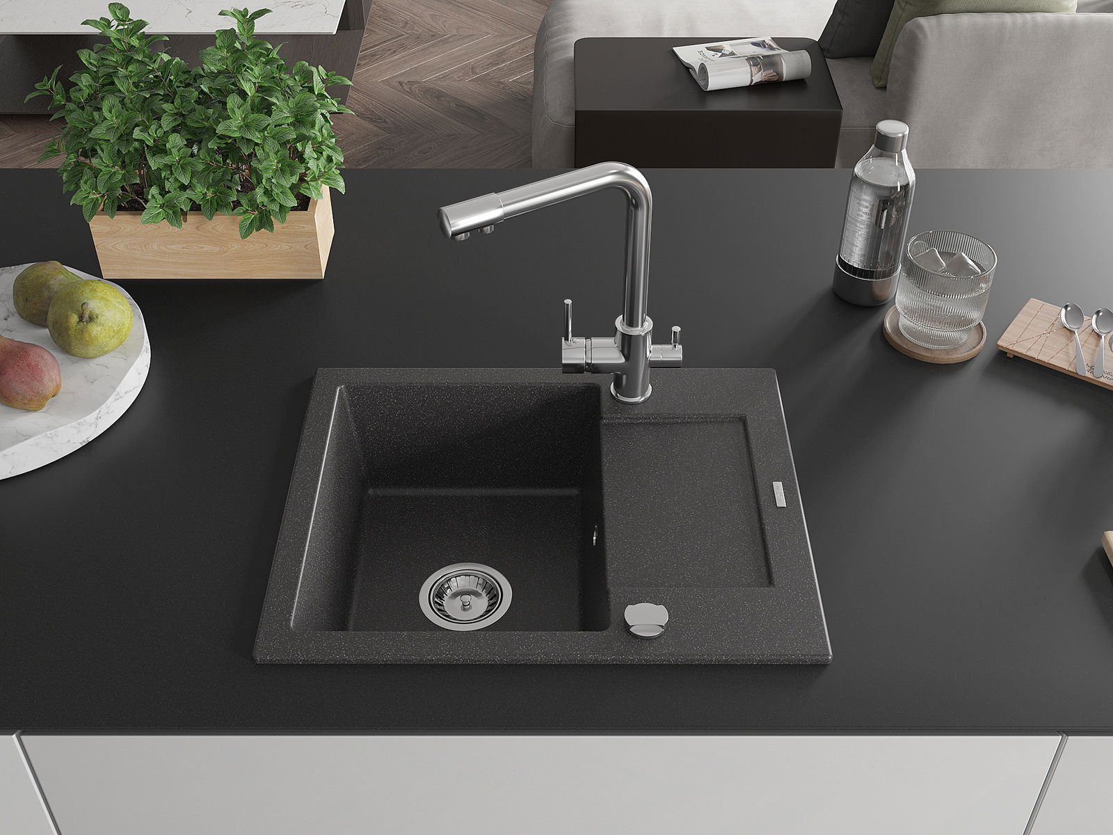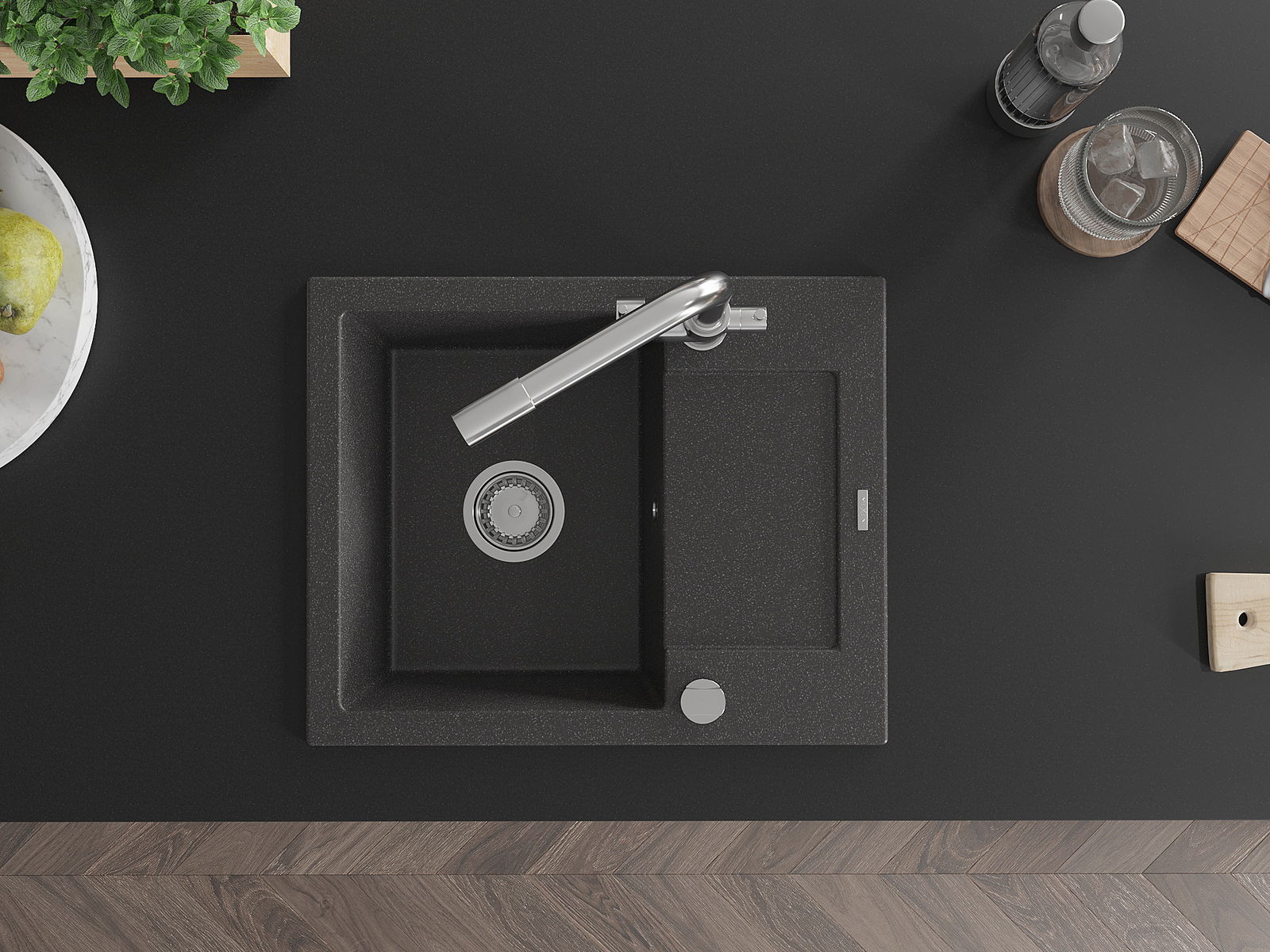 Ο νεροχύτης κατασκευάστηκε από υψηλής ποιότητας γρανίτη. Αποτελεί μια κομψή, και κυρίως πρακτική προσθήκη για κάθε κουζίνα, ανεξάρτητα από το στυλ της. Η υψηλή ποιότητα και η αντοχή του γρανίτη εξασφαλίζουν πολυετή χρήση.
