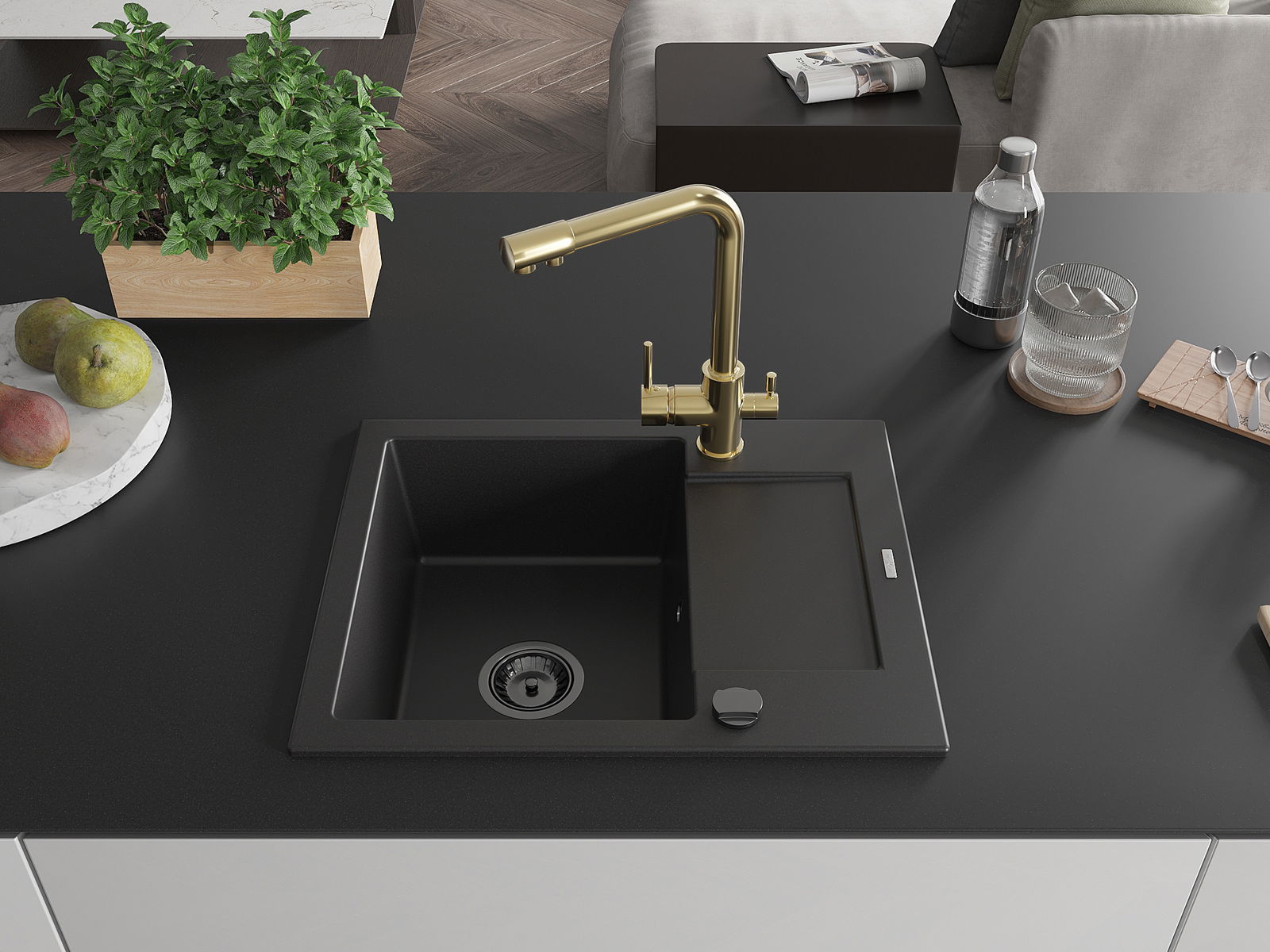 Ο νεροχύτης κατασκευάστηκε από υψηλής ποιότητας γρανίτη. Αποτελεί μια κομψή, και κυρίως πρακτική προσθήκη για κάθε κουζίνα, ανεξάρτητα από το στυλ της. Η υψηλή ποιότητα και η αντοχή του γρανίτη εξασφαλίζουν πολυετή χρήση.