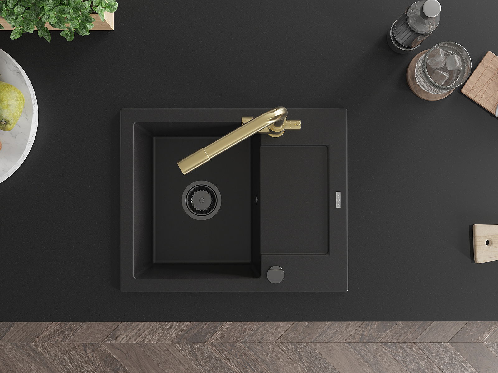 Mexen Enzo νεροχύτης γρανίτη 1-δοχείου με στραγγιστήρα και μπαταρία