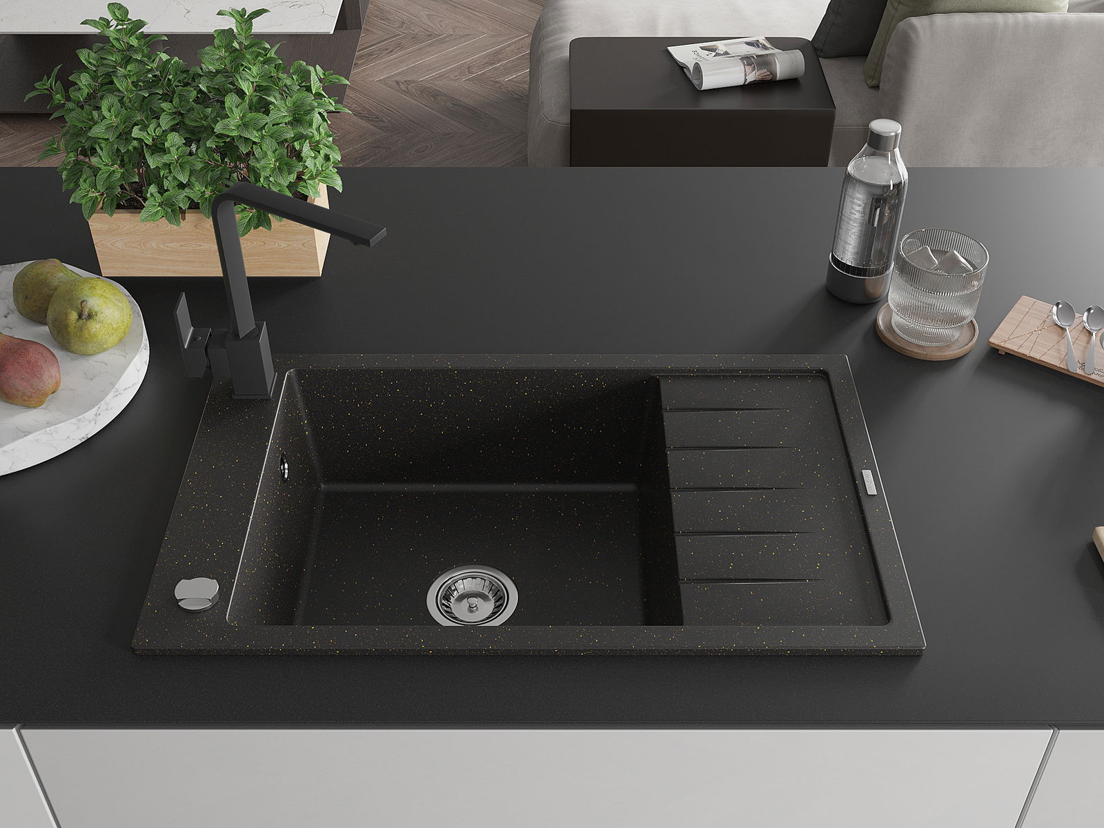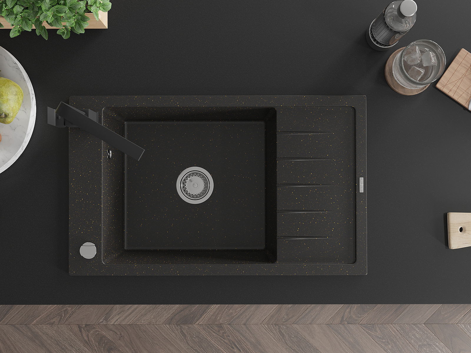 Mexen Elias Νεροχύτης γρανίτης μονός με επιφάνεια στραγγίσματος και