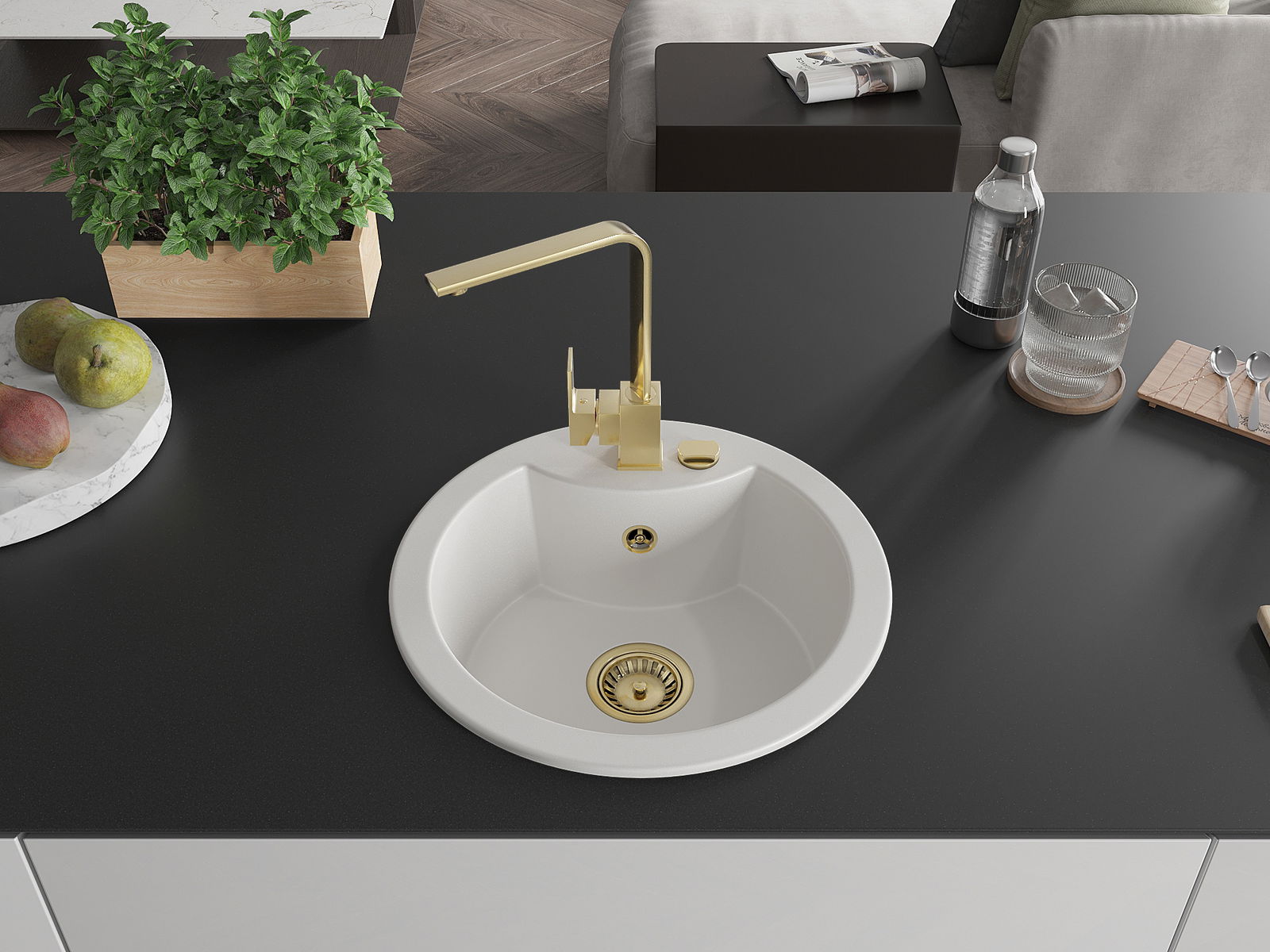 Ο νεροχύτης κατασκευάστηκε από υψηλής ποιότητας γρανίτη. Αποτελεί μια κομψή, και κυρίως πρακτική προσθήκη για κάθε κουζίνα, ανεξάρτητα από το στυλ της. Η υψηλή ποιότητα και η αντοχή του γρανίτη εξασφαλίζουν πολυετή χρήση.