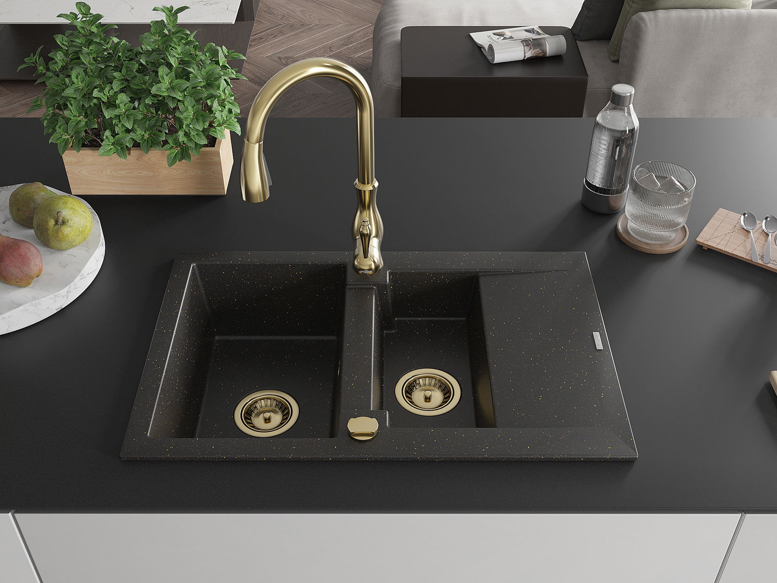 Mexen Gaspar νεροχύτης γρανίτης 1,5-θαλάμων με αποστραγγιστήρα και μπαταρία