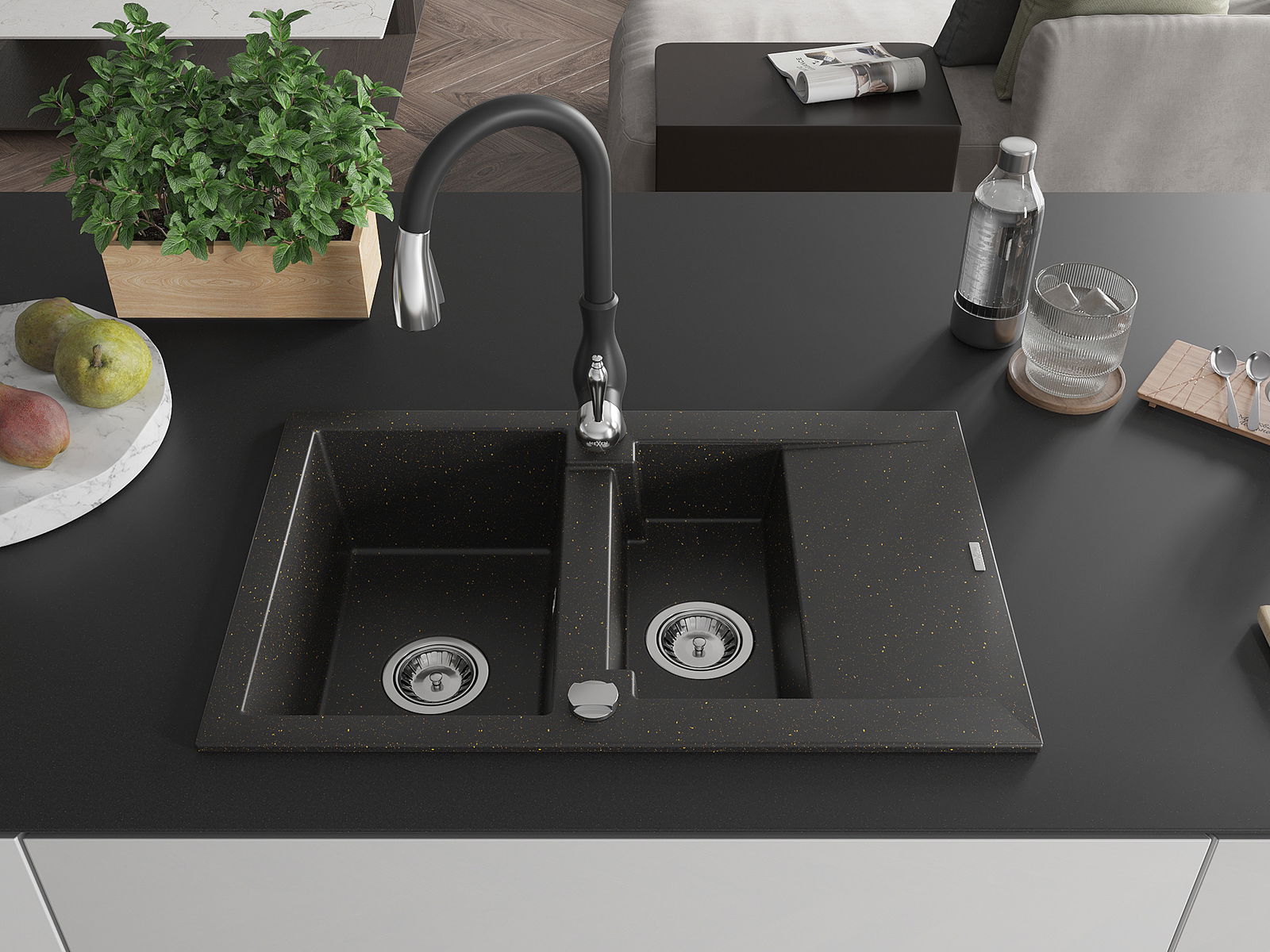 Ο νεροχύτης κατασκευάστηκε από υψηλής ποιότητας γρανίτη. Αποτελεί μια κομψή, και κυρίως πρακτική προσθήκη για κάθε κουζίνα, ανεξάρτητα από το στυλ της. Η υψηλή ποιότητα και η αντοχή του γρανίτη εξασφαλίζουν πολυετή χρήση.