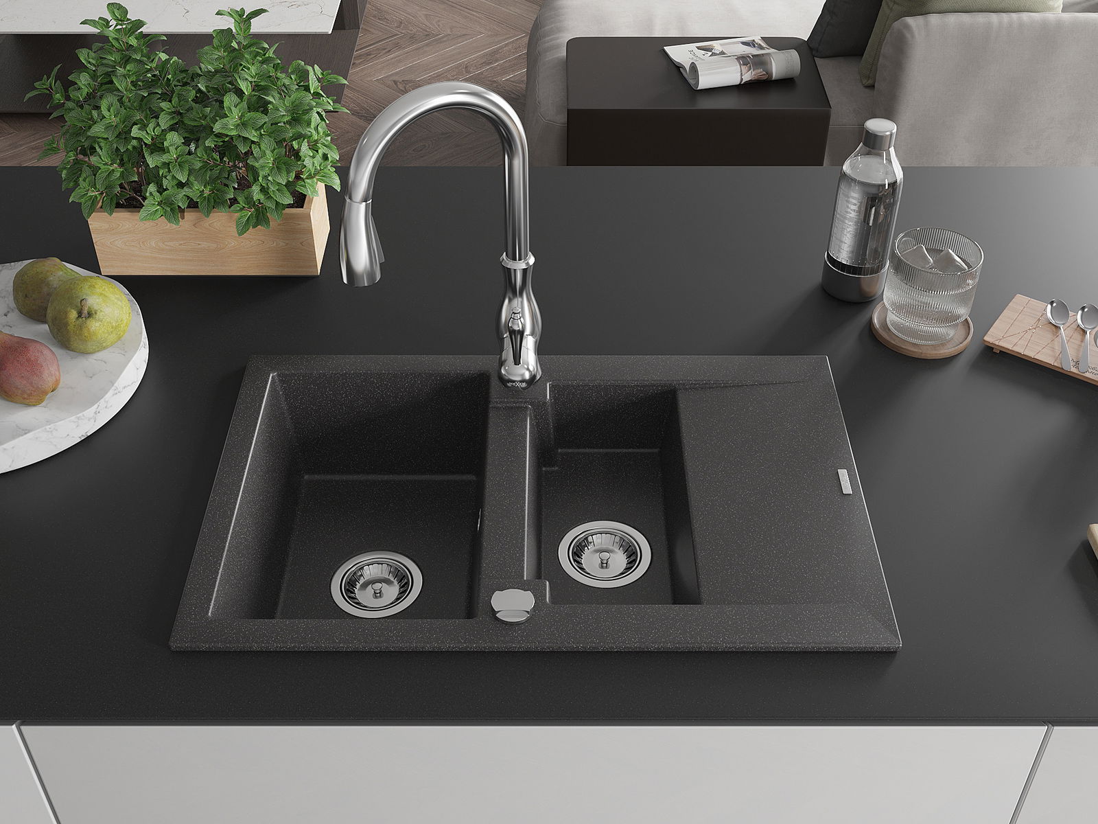 Mexen Gaspar νεροχύτης γρανίτης 1,5 θαλάμων με αποστραγγιστική επιφάνεια