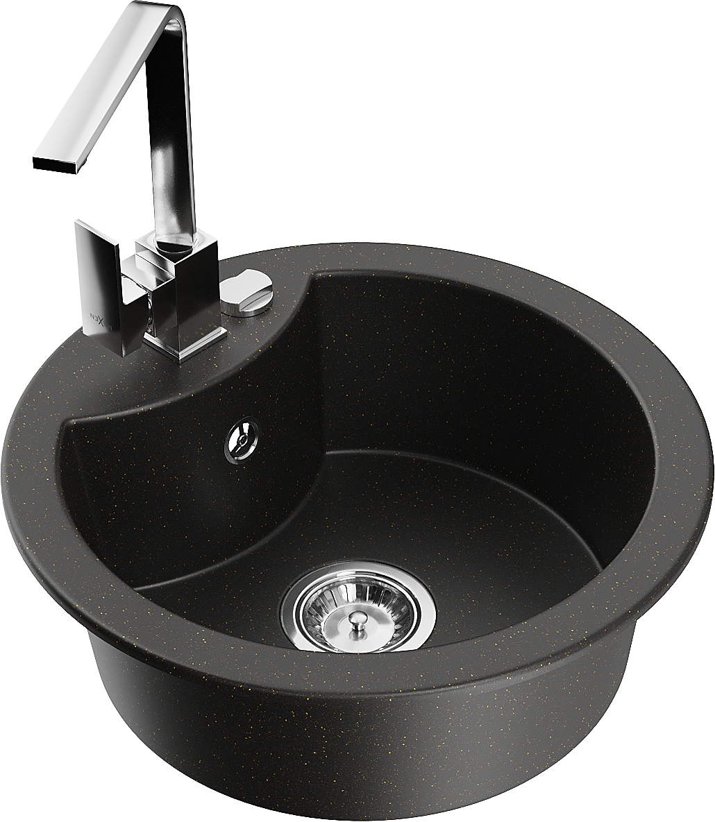 Mexen Diego νιπτήρας γρανίτη 1-θάλαμου με βρύση κουζίνας Rita, μαύρος/χρυσός