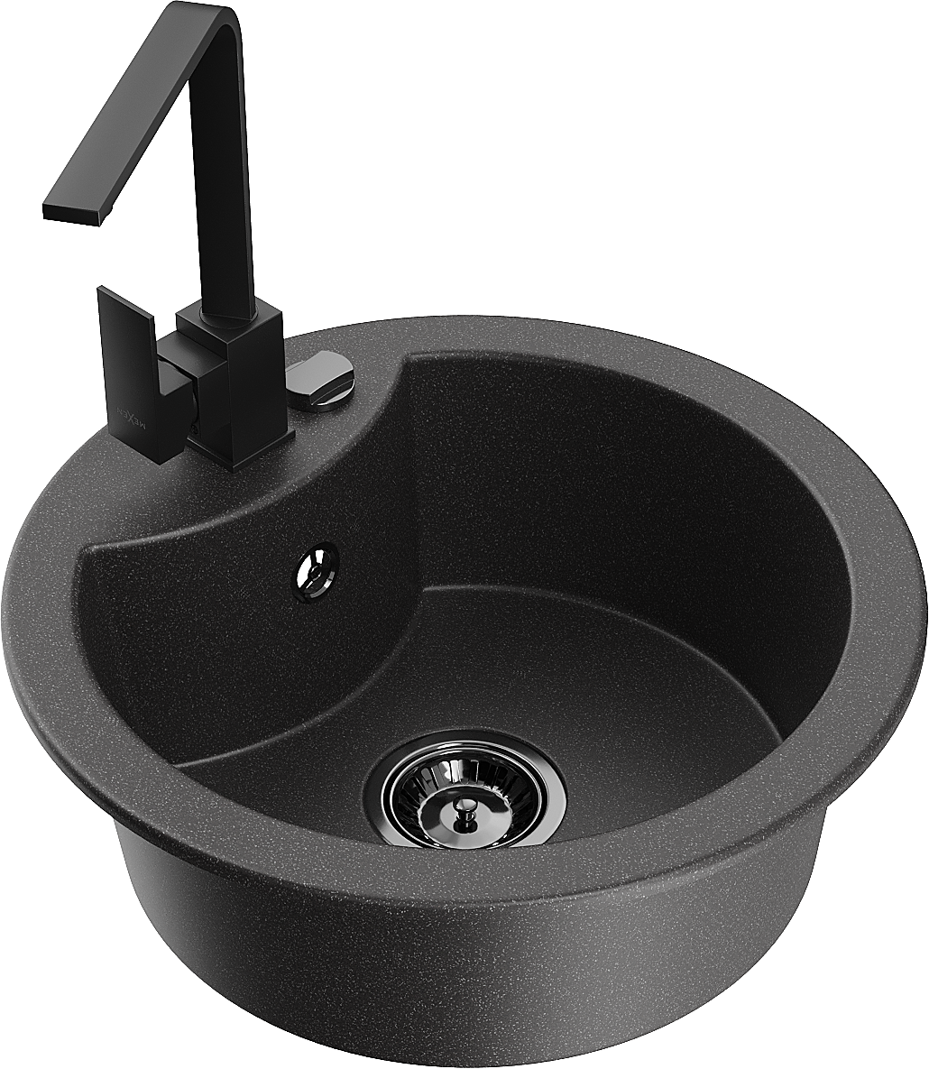Mexen Diego Νεροχύτης γρανίτης 1-χαμένος με μπαταρία κουζίνας Rita, μαύρος με