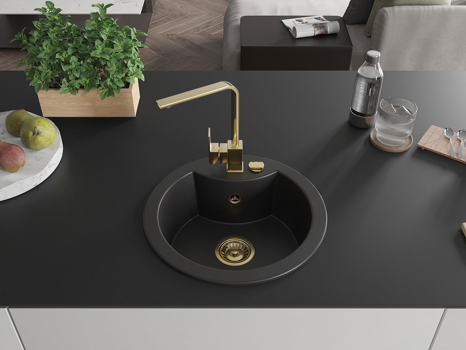 Mexen Diego νεροχύτης γρανίτη 1 θαλάμου με μπαταρία κουζίνας Rita, μαύρος