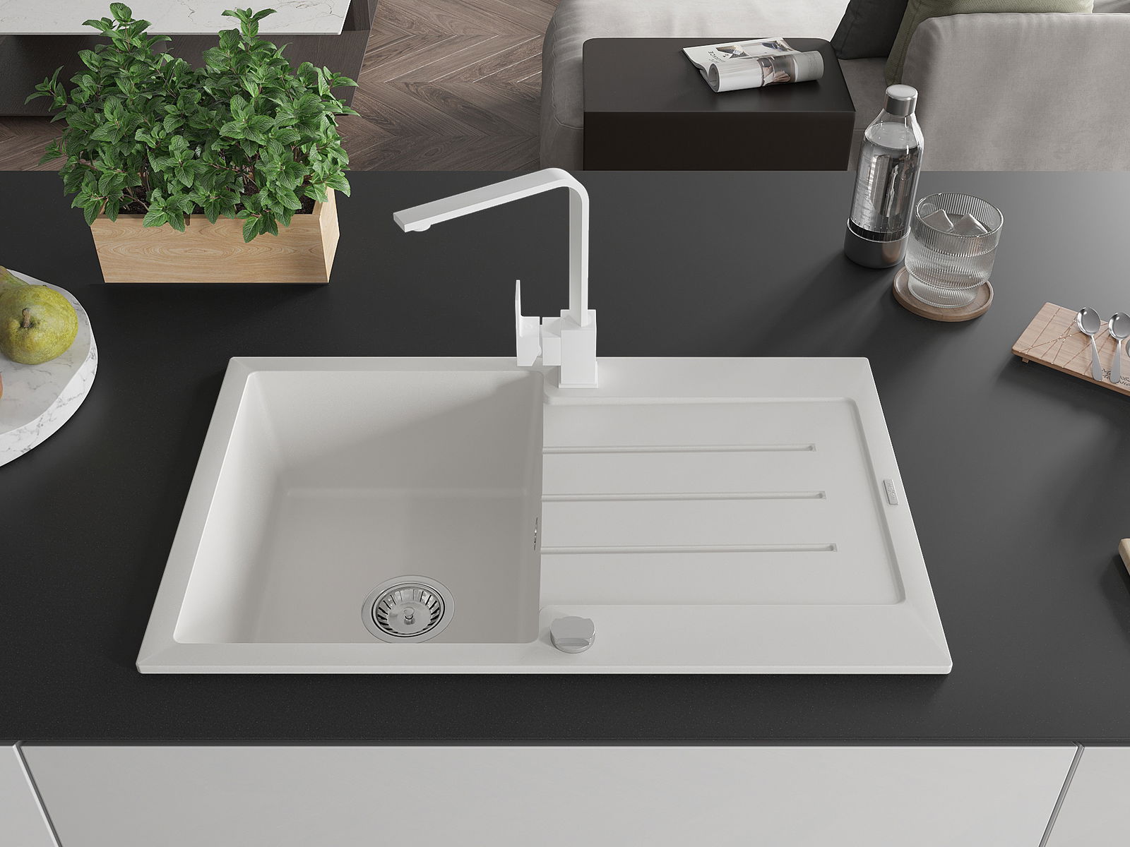 Mexen Bruno νεροχύτης γρανίτης 1-θέσεων με στραγγιστήρι και μπαταρία