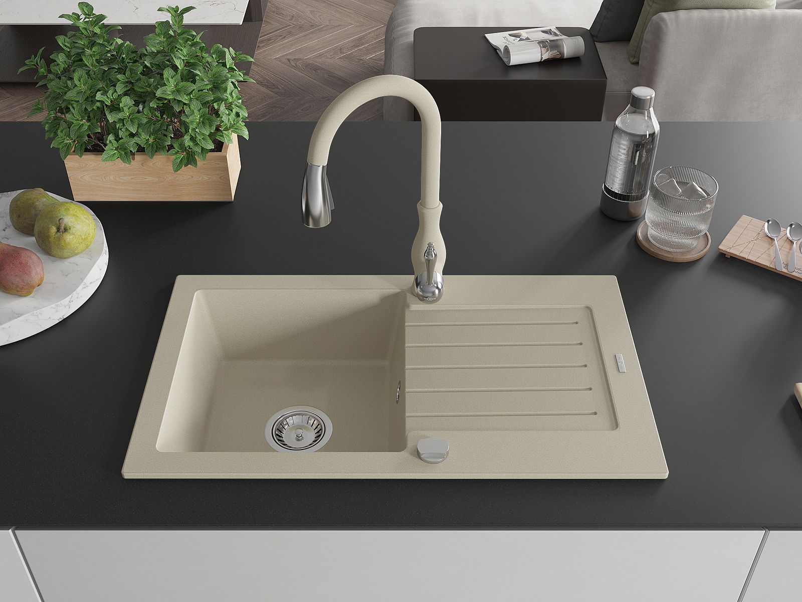Η επιφάνεια του νεροχύτη είναι ανθεκτική σε λεκέδες και αποχρωματισμούς, καθιστώντας τη εύκολη στη συντήρηση καθαριότητας και διατηρεί το χρώμα της για μεγάλο χρονικό διάστημα χρήσης. Αισθητική και πρακτική συμπλήρωση κάθε κουζίνας.