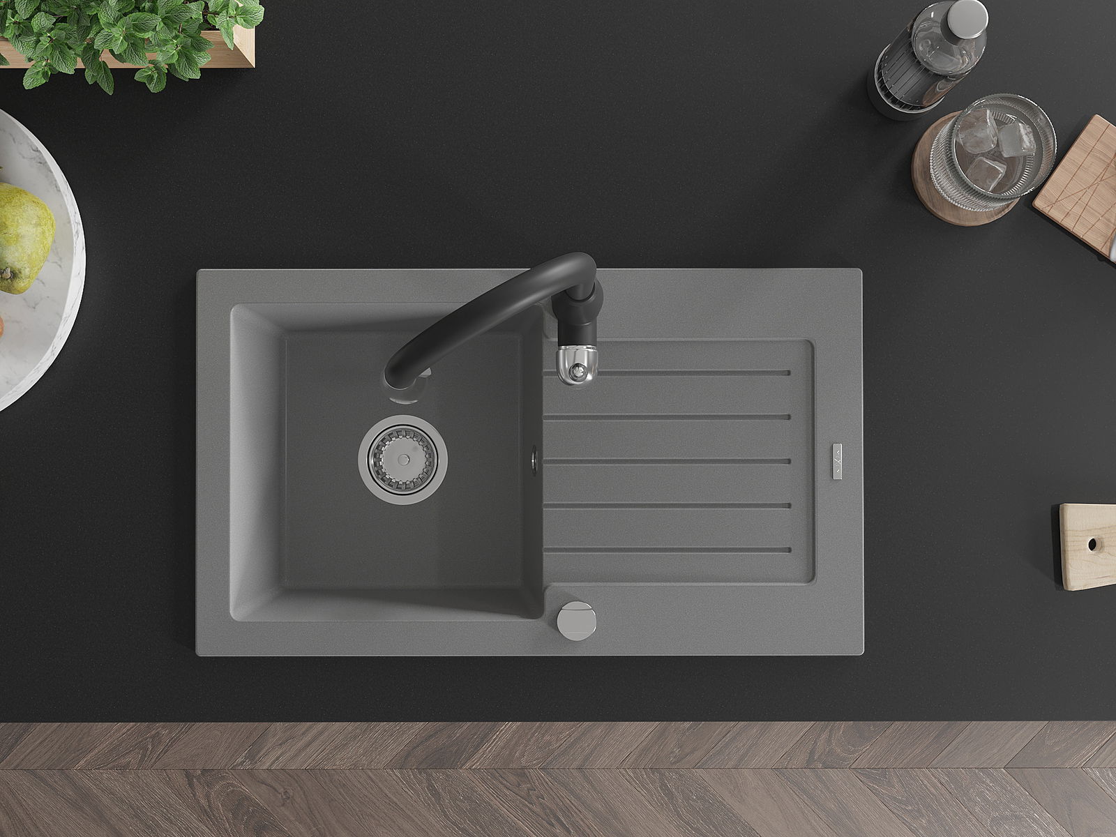 Ο νεροχύτης κατασκευάστηκε από υψηλής ποιότητας γρανίτη. Αποτελεί μια κομψή, και κυρίως πρακτική προσθήκη για κάθε κουζίνα, ανεξάρτητα από το στυλ της. Η υψηλή ποιότητα και η αντοχή του γρανίτη εξασφαλίζουν πολυετή χρήση.