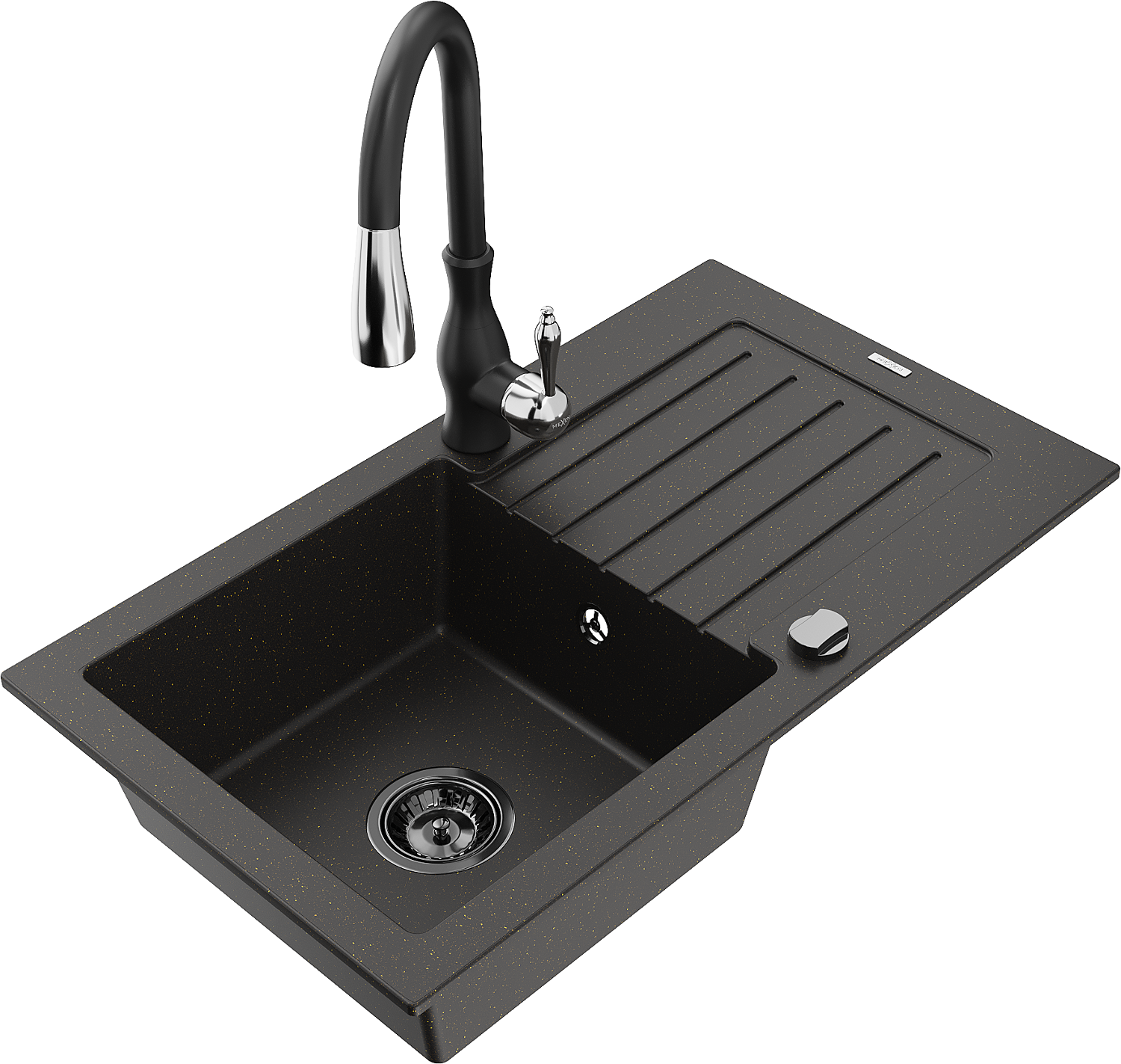 Mexen Pablo νεροχύτης γρανίτης 1-θάλαμος με στραγγιστήρα και μπαταρία
