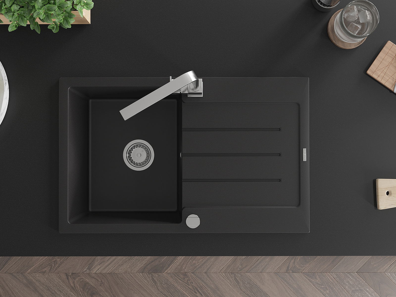 Ο νεροχύτης κατασκευάστηκε από υψηλής ποιότητας γρανίτη. Αποτελεί μια κομψή, και κυρίως πρακτική προσθήκη για κάθε κουζίνα, ανεξάρτητα από το στυλ της. Η υψηλή ποιότητα και η αντοχή του γρανίτη εξασφαλίζουν πολυετή χρήση.