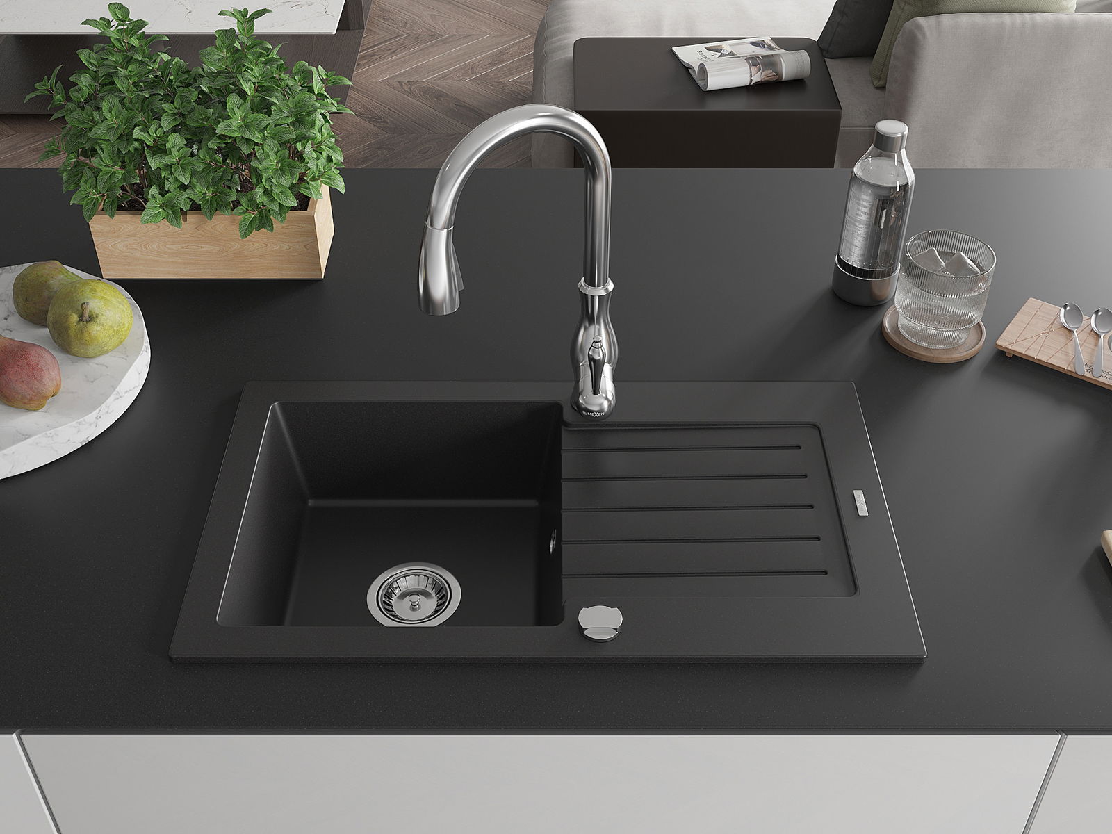 Mexen Pablo νεροχύτης γρανίτης 1-θυρίδας με αποστραγγιστήρα και μπαταρία