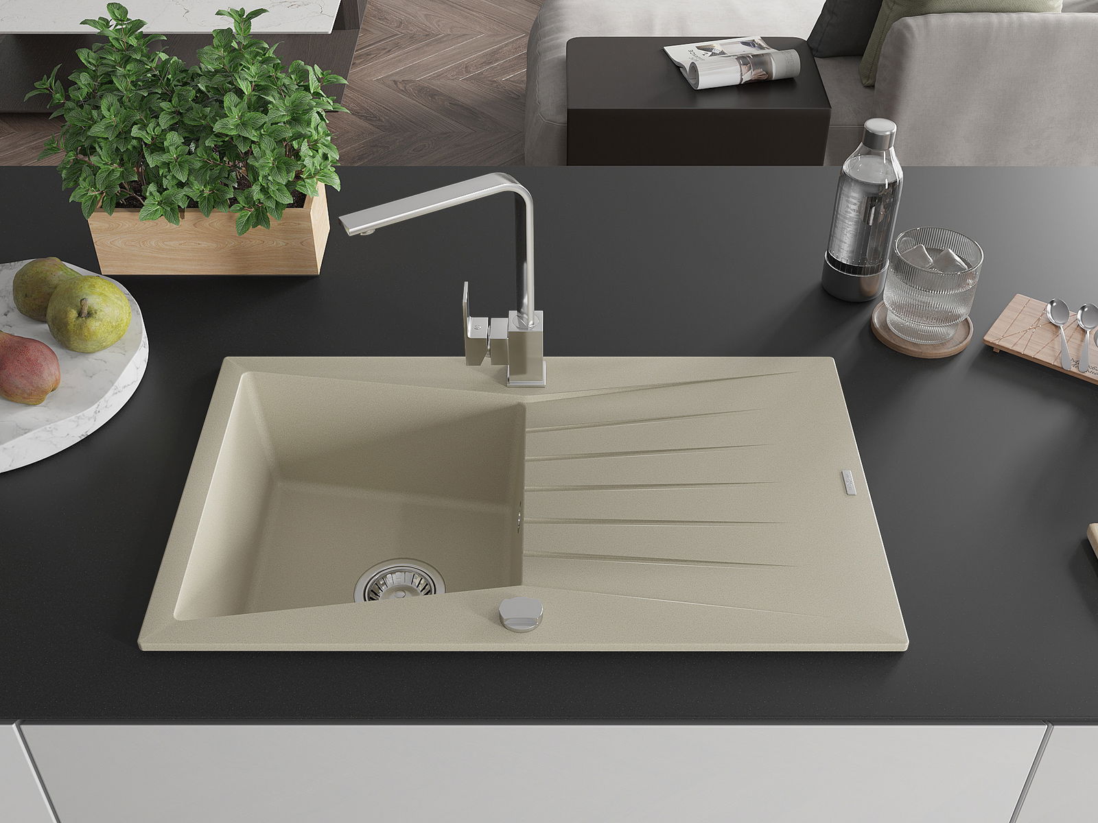 Ο νεροχύτης κατασκευάστηκε από υψηλής ποιότητας γρανίτη. Αποτελεί μια κομψή, και κυρίως πρακτική προσθήκη για κάθε κουζίνα, ανεξάρτητα από το στυλ της. Η υψηλή ποιότητα και η αντοχή του γρανίτη εξασφαλίζουν πολυετή χρήση.