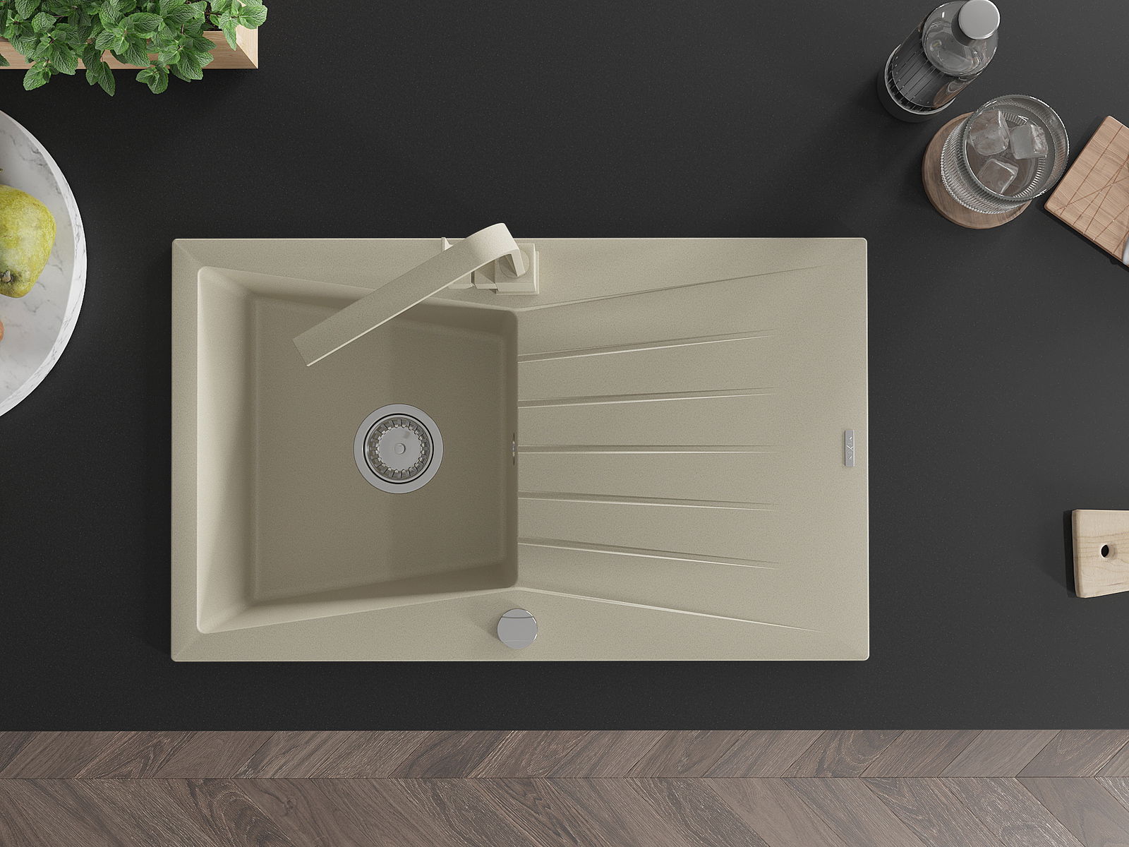 Ο νεροχύτης κατασκευάστηκε από υψηλής ποιότητας γρανίτη. Αποτελεί μια κομψή, και κυρίως πρακτική προσθήκη για κάθε κουζίνα, ανεξάρτητα από το στυλ της. Η υψηλή ποιότητα και η αντοχή του γρανίτη εξασφαλίζουν πολυετή χρήση.