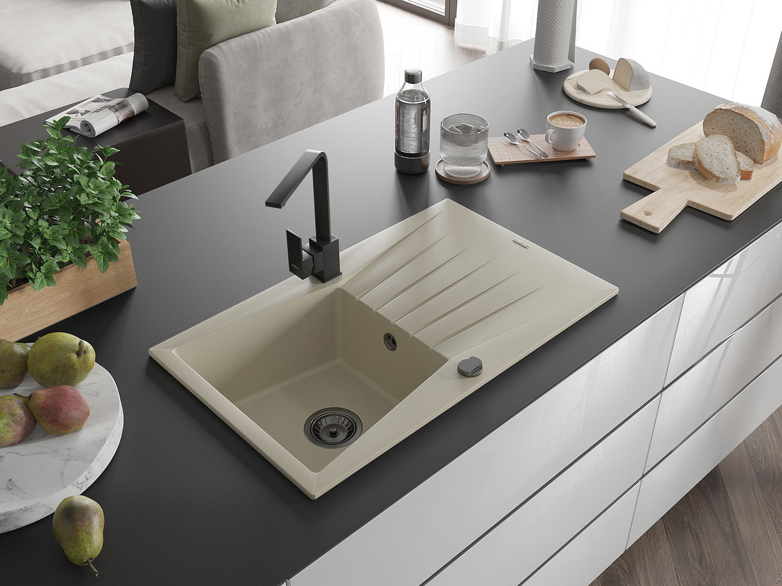 Ο νεροχύτης κατασκευάστηκε από υψηλής ποιότητας γρανίτη. Αποτελεί μια κομψή, και κυρίως πρακτική προσθήκη για κάθε κουζίνα, ανεξάρτητα από το στυλ της. Η υψηλή ποιότητα και η αντοχή του γρανίτη εξασφαλίζουν πολυετή χρήση.